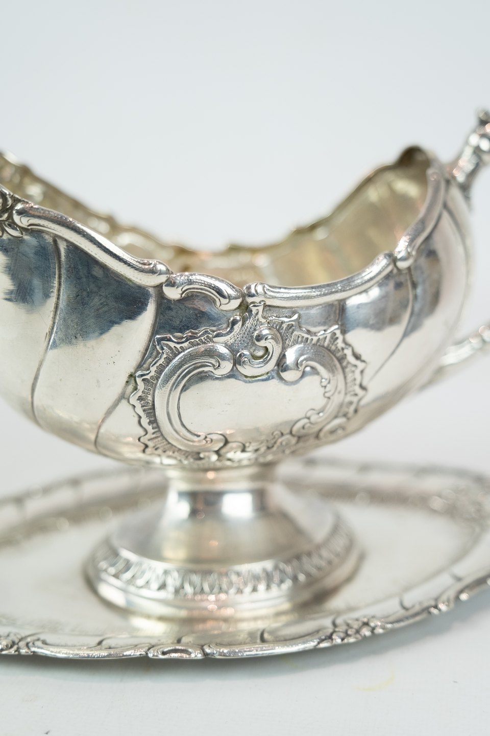 Et par sovseskåle af tretårnet sølv.