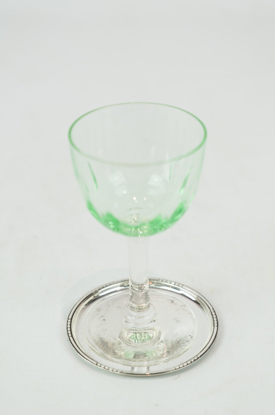 SoldSet of glass trays in hallmarked silver.
