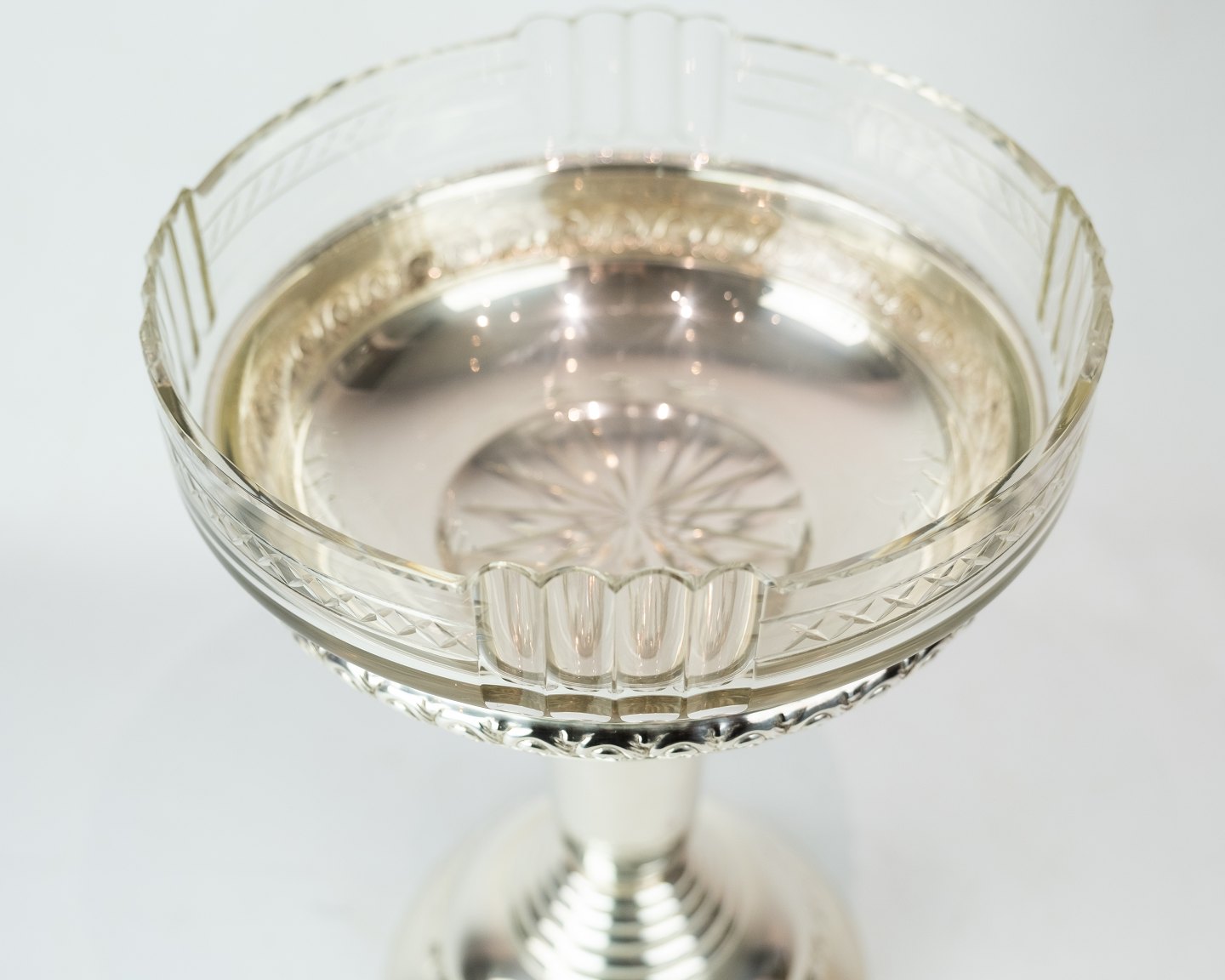 Opsats af sølvplet i Jugendstil med glas indsats fra 1920erne.