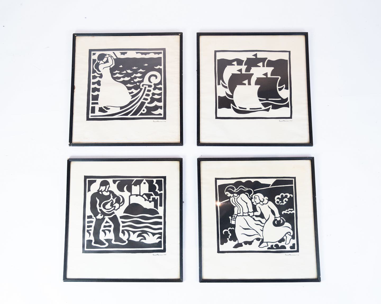 Forskellige tryk i sort og hvid fra 1915, med sort ramme af Ernst Hansen (f. 1892, d. 1968). Ernst Hansen var en dansk tegner, grafiker og maler.
