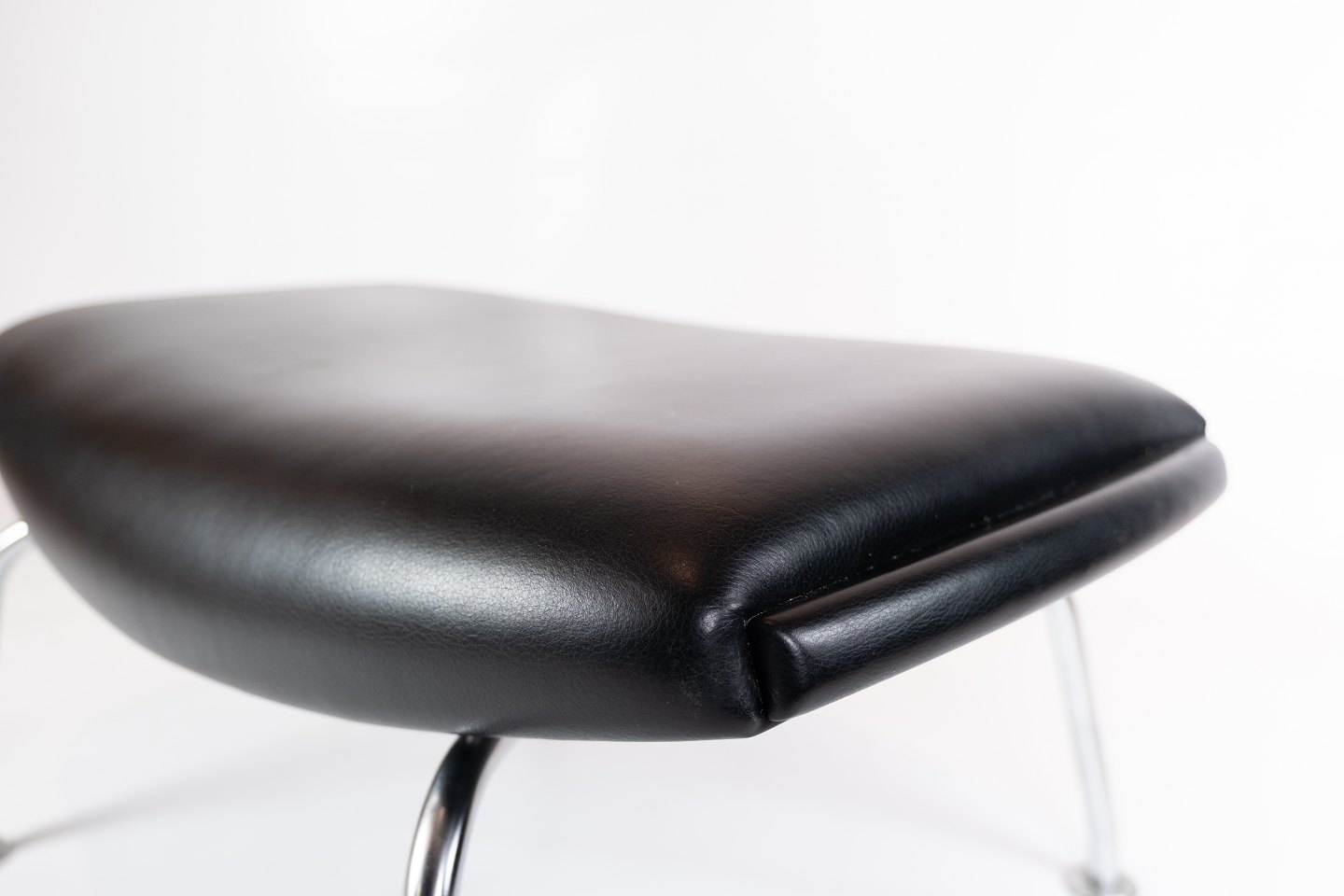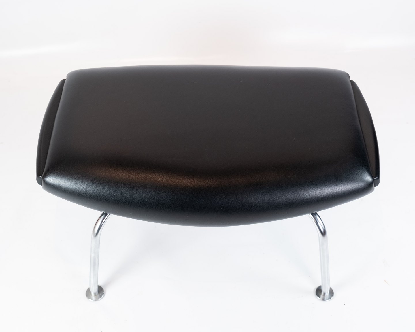 SoldStool for the Ox chair, model EJ 100-F, upholstered in Black leather, designed by Hans J. Wegner in the 1960s and manufactured at Erik Jørgensen furniture factory.