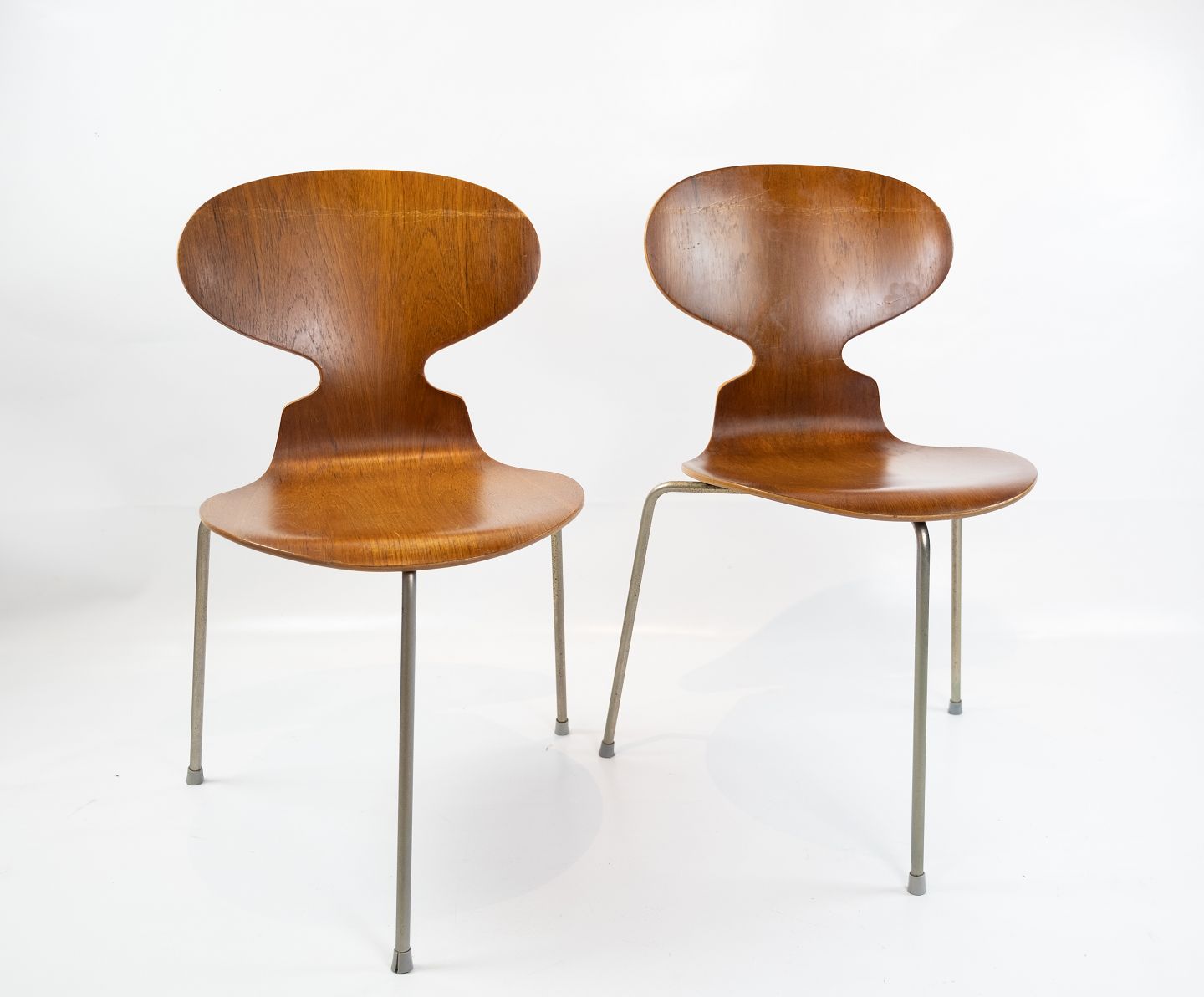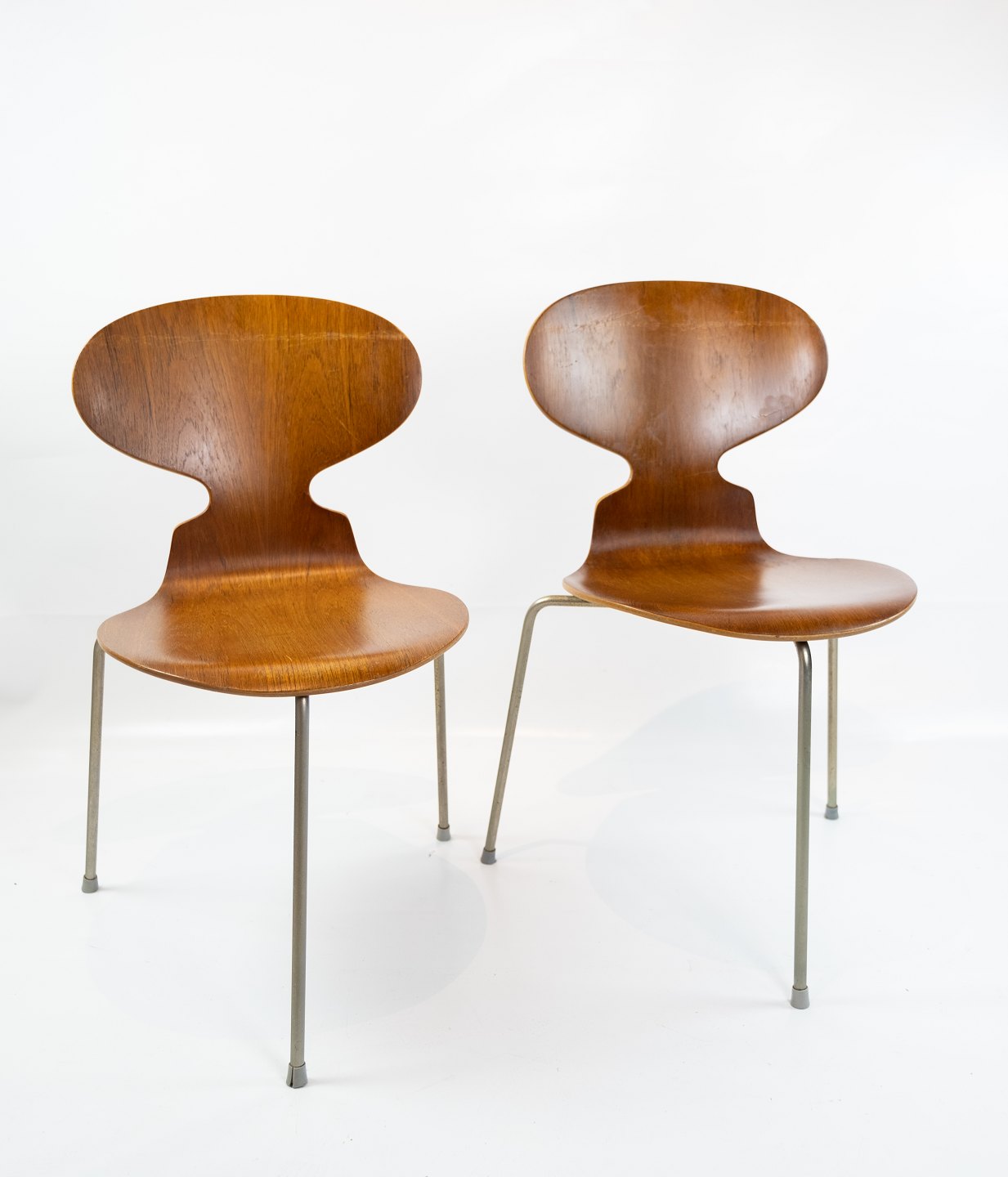SoldA pair of Ant, model 3101, in teak, designed by Arne Jacobsen in 1952 and manufactured by Fritz Hansen. The pair is in great vintage conditoin.
