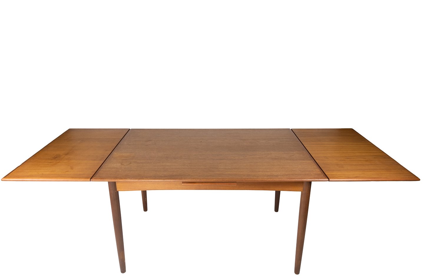 Spisebord i teak med hollandsk udtræk af dansk design fra 1960erne. Bordet er i flot brugt stand.