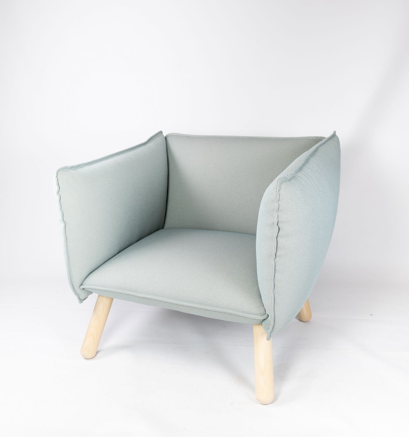Dormi loungestol, polstret i gråt stof og med ben af bøg, er et indbydende møbelstykke, der tilføjer både komfort og stil til ethvert rum. Med sit enkle og moderne design er denne stol perfekt til afslapning og hygge.