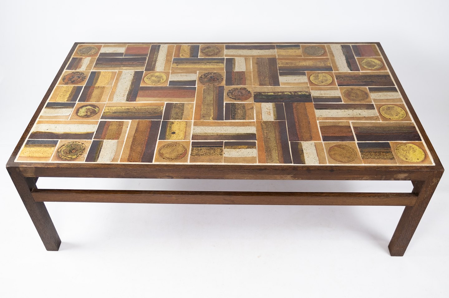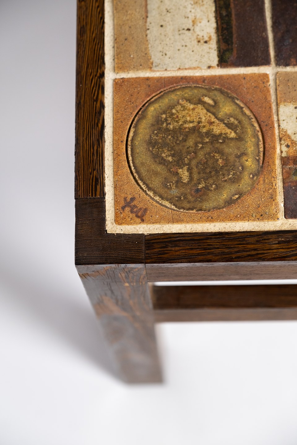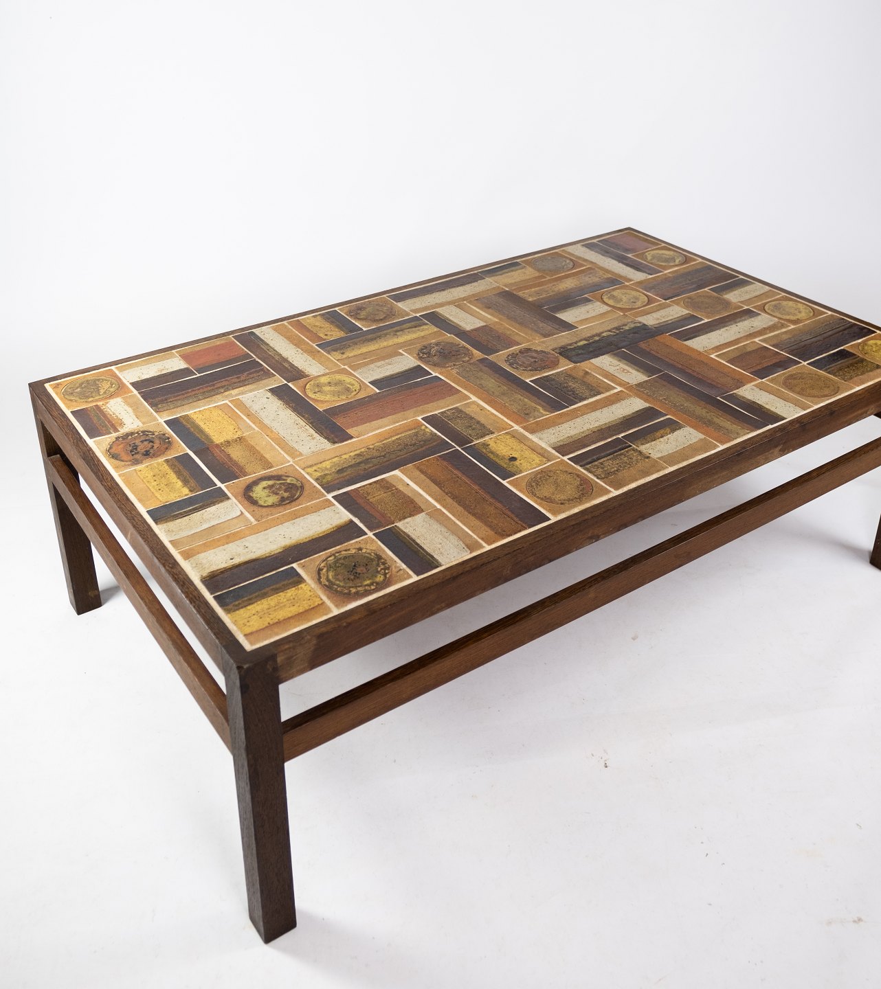 SoldCoffee table in rosewood and dark tiles, designed by Tue Poulsen from the 1970s. The table is in great vintage condition.
