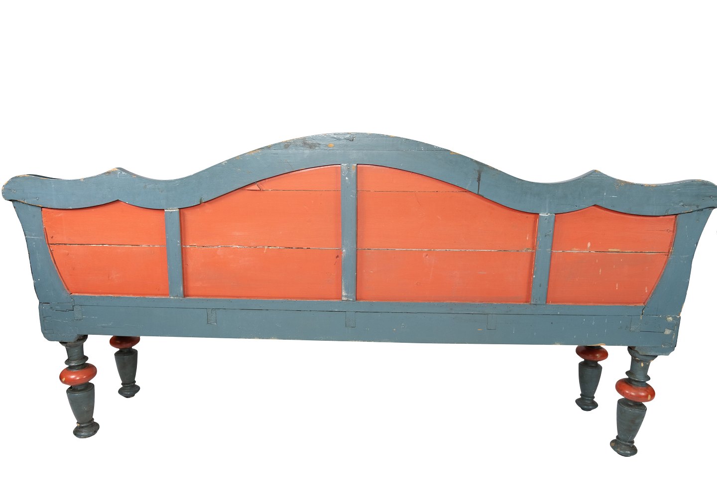 Painted bench in turqouise and red colors, and in great antique condition from the 1860s.