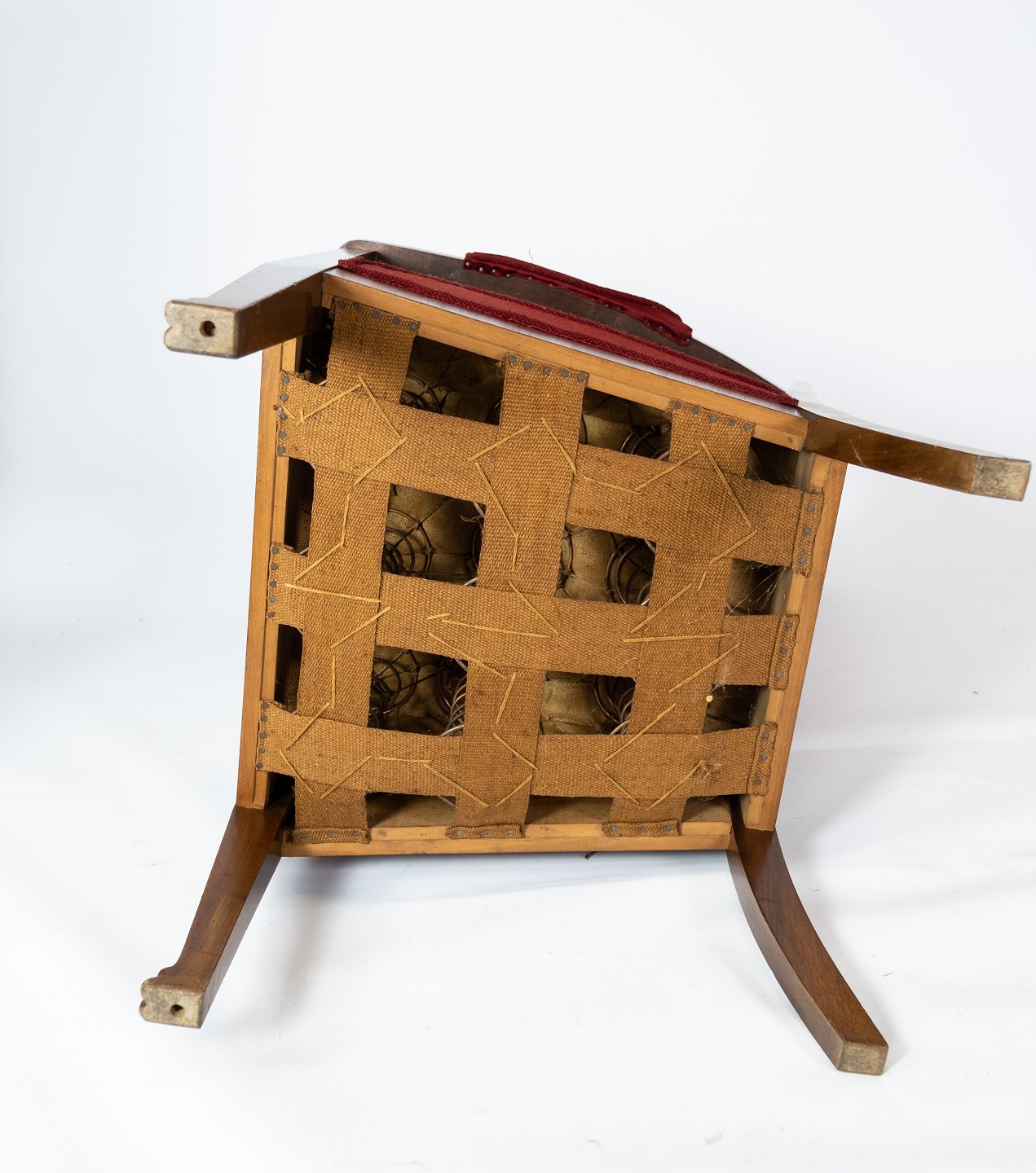Set of two armchairs of walnut with inlaid wood and upholstered with red velvet from around 1910.