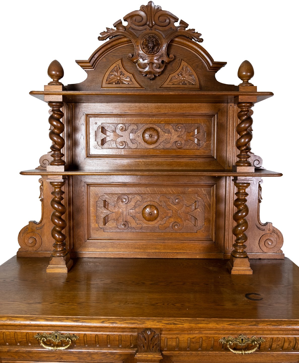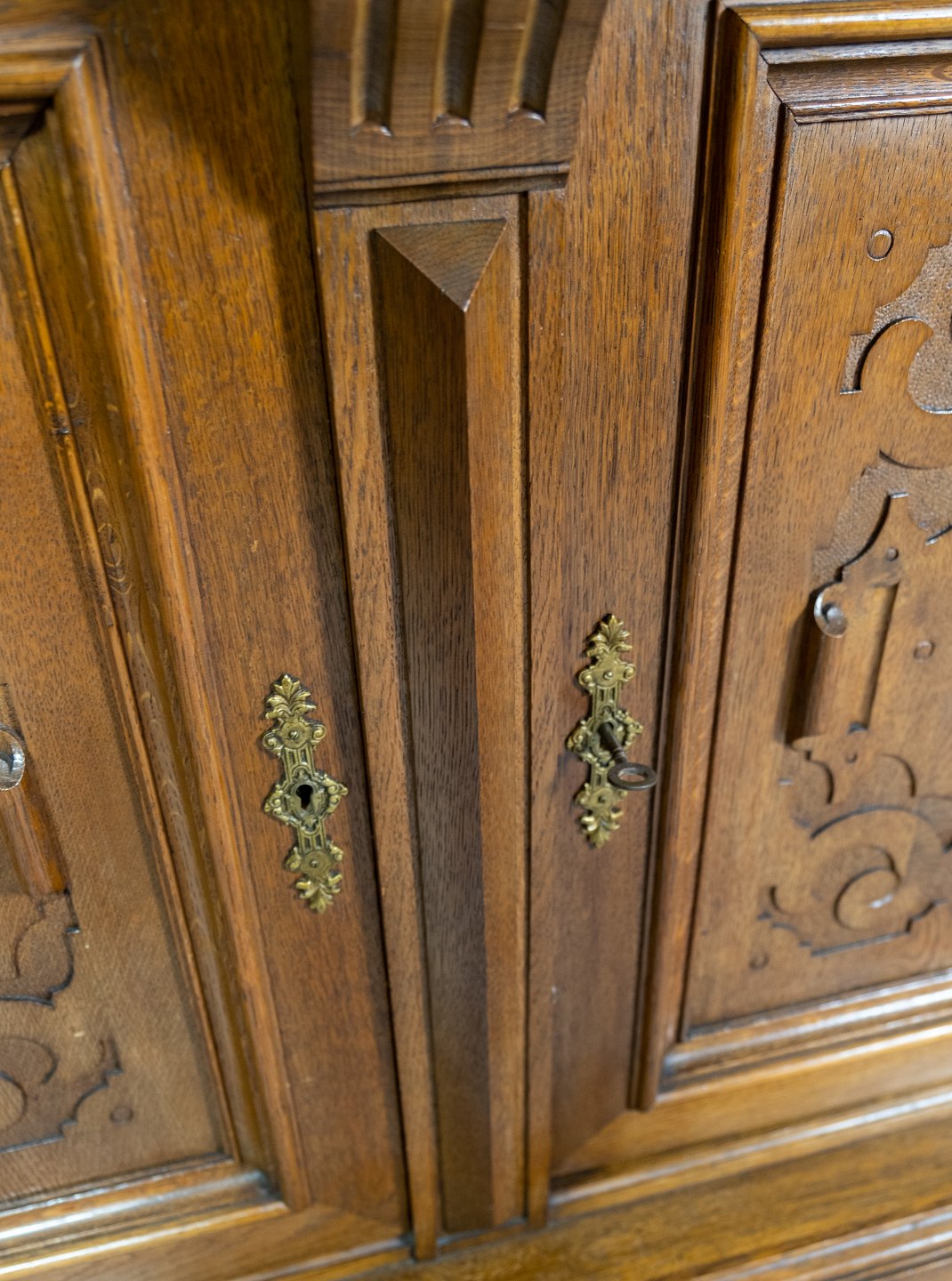 Large cabinet of oak with carvings, in great antique condition from the 1920s.