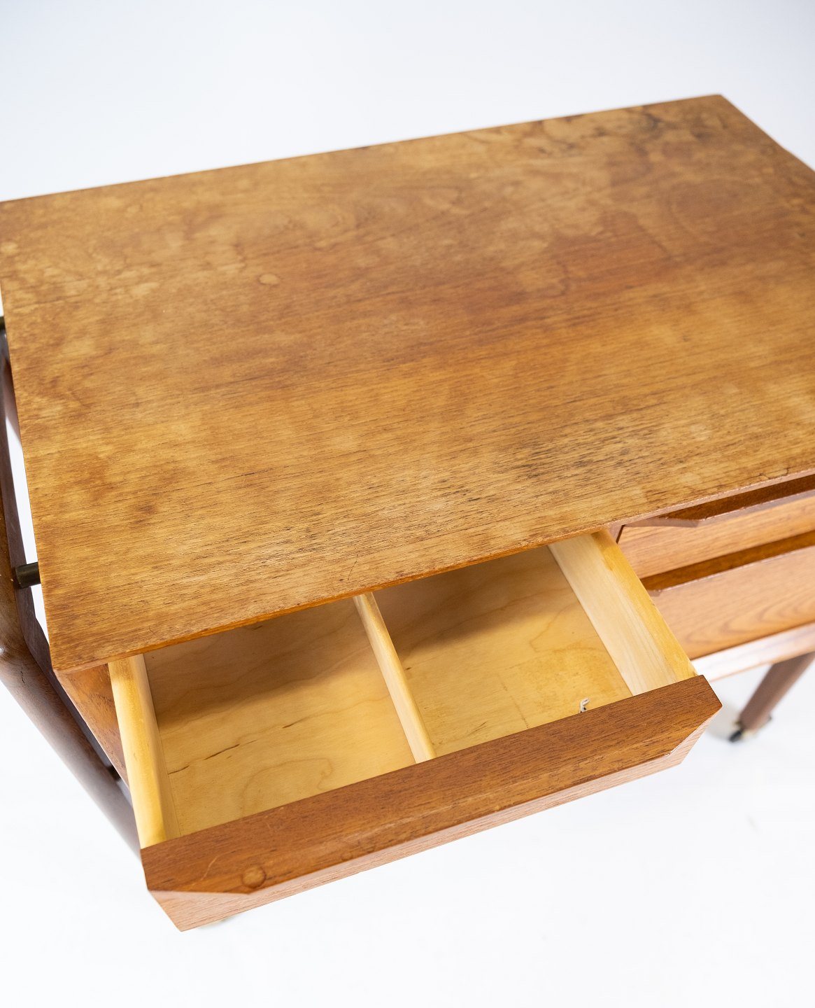 Sidebord med skuffer og på hjul i teak af dansk design fra 1960erne.