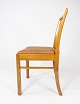 Set of 10 dining room chairs of light wood and upholstered with cognac leather from the 1940s. The chairs are in great vintage condition.