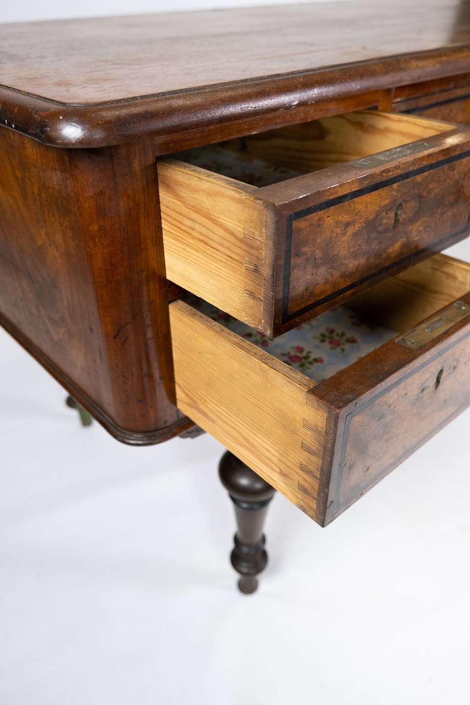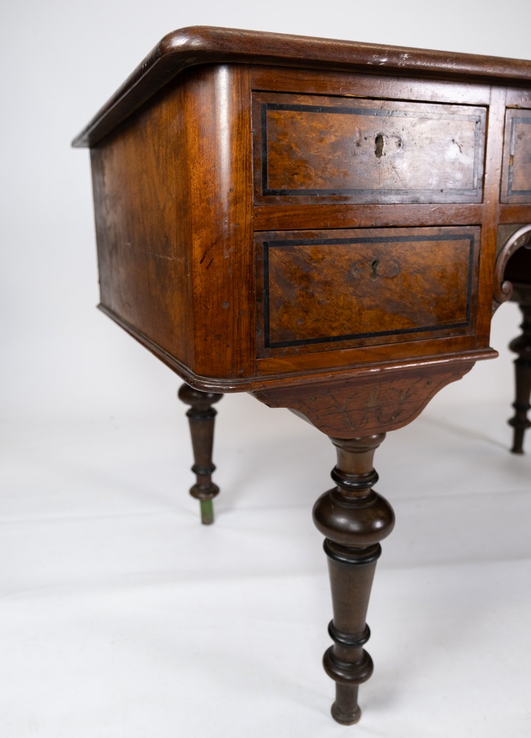 Skrivebord af nøddetræ, i flot antik stand fra 1860erne.
