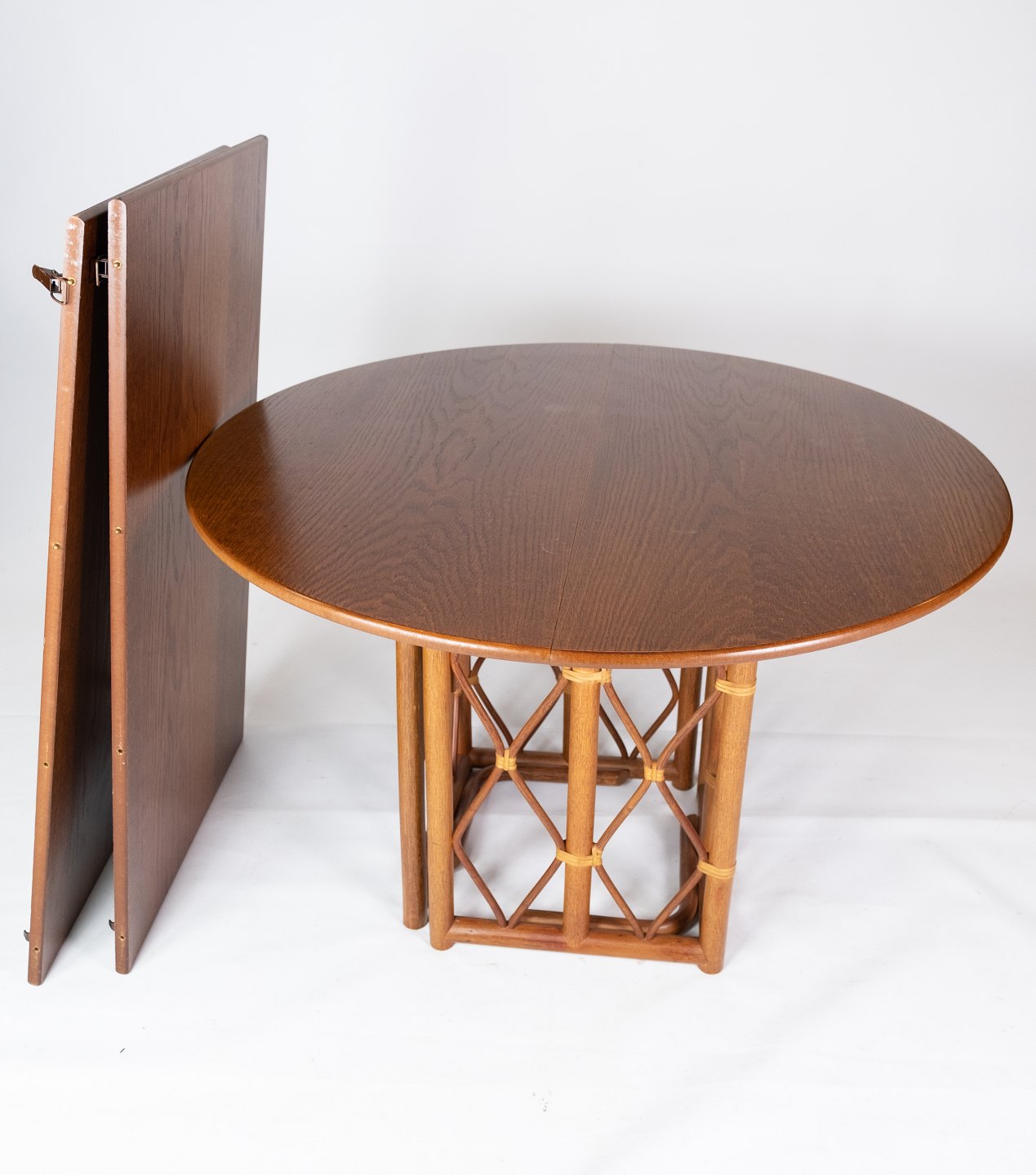 Spisebord i eg med to udtræksplader af dansk design fra 1960erne. Bordet er i flot brugt stand.