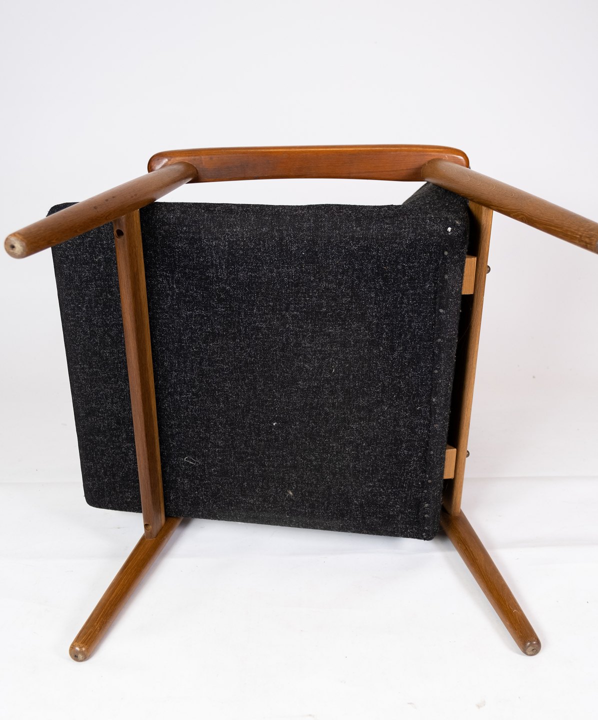 Easy chair with stool in teak and dark wool fabric of danish design from the 1960s. The set is in great vintage condition.