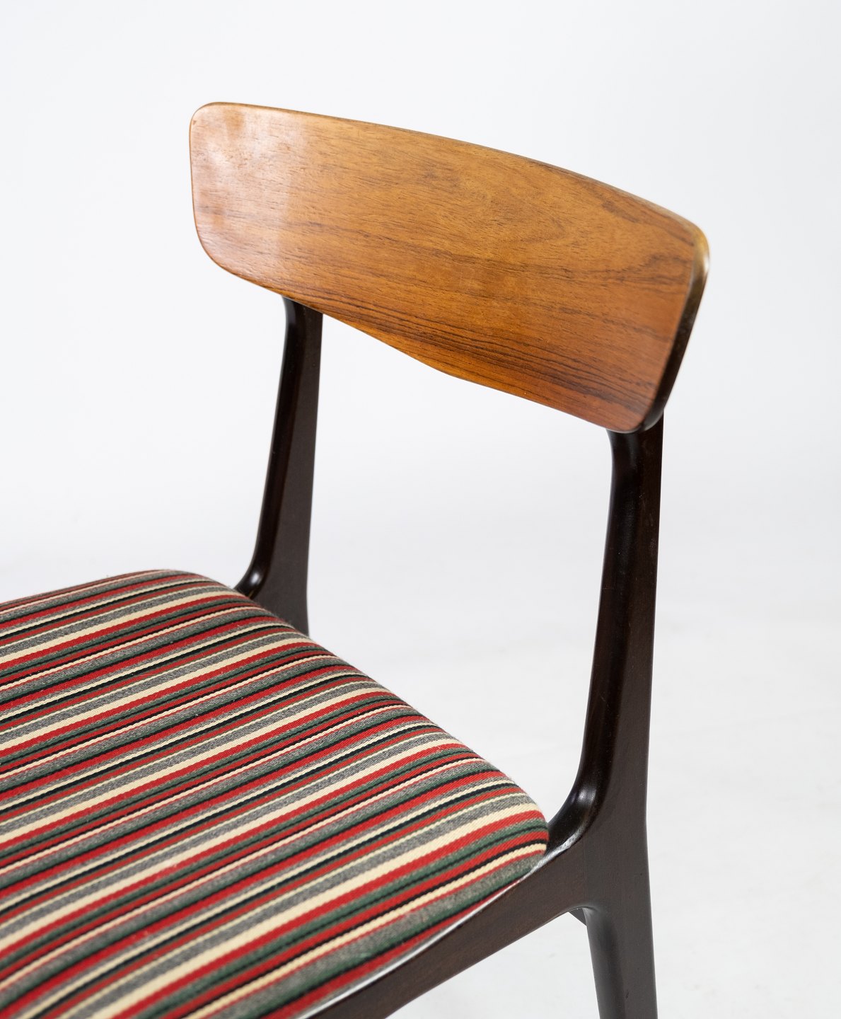 Set Of 2 Dining Chairs - Rosewood - Striped Fabric - Schønning & Elgaard - 1960s