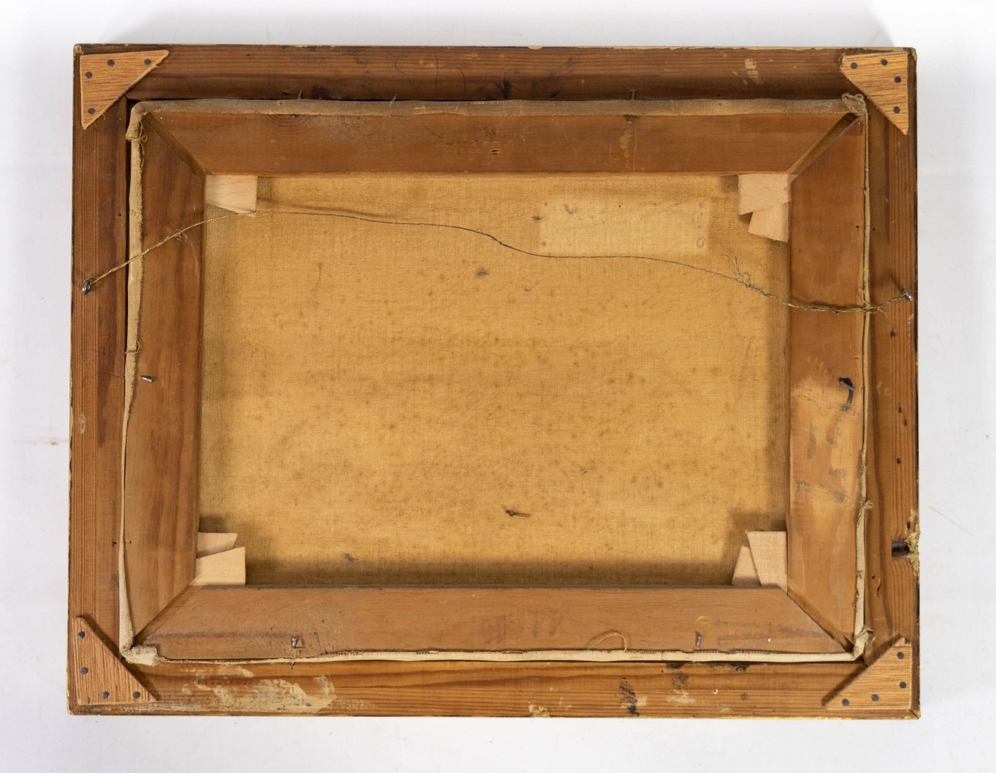 Oliemaleri med natur motiv og forgyldt ramme, med ukendt signatur.