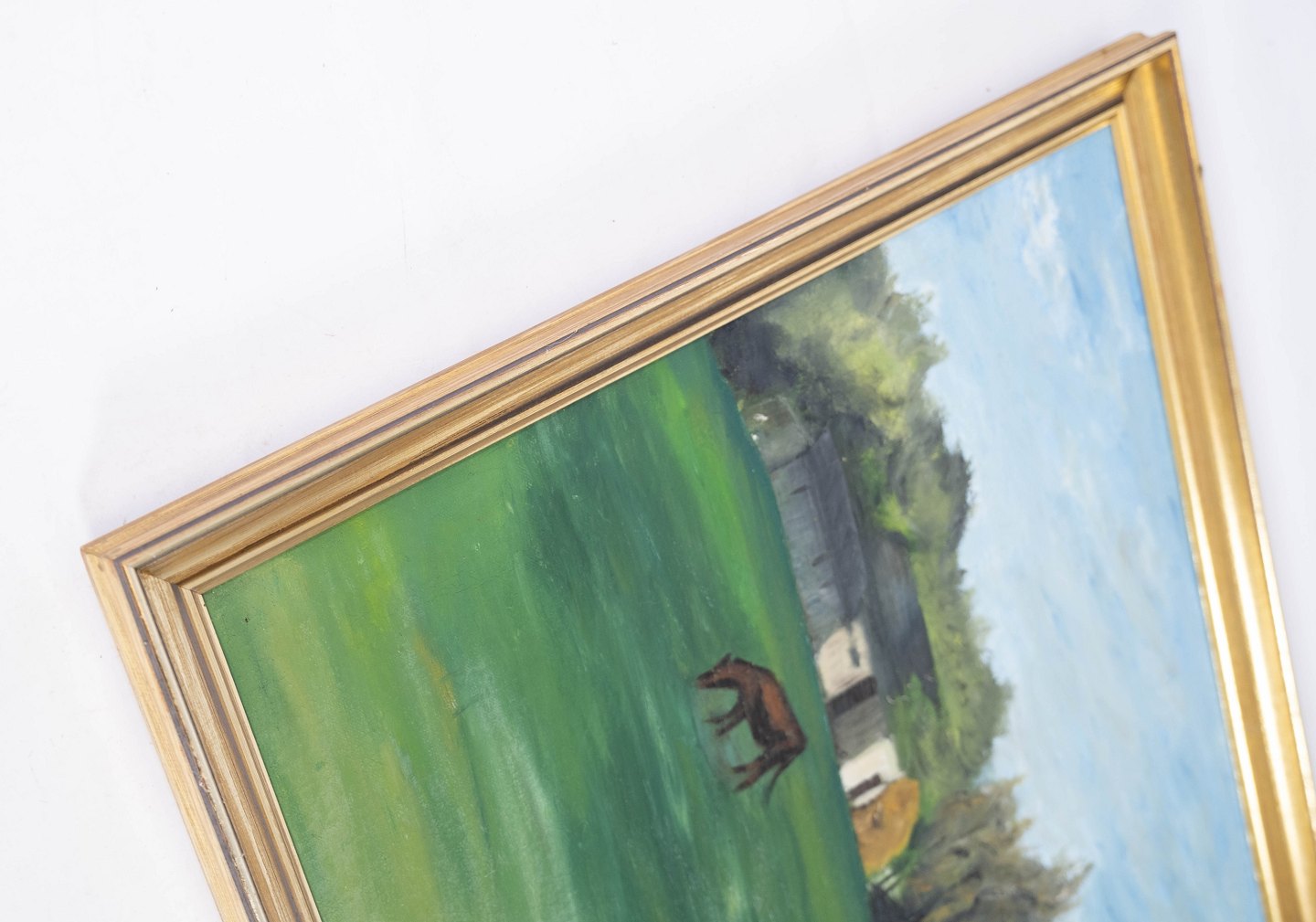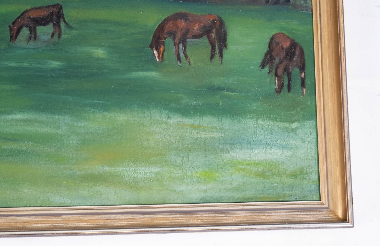 Oliemaleri med motiv af heste og med forgyldt ramme fra 1920erne.