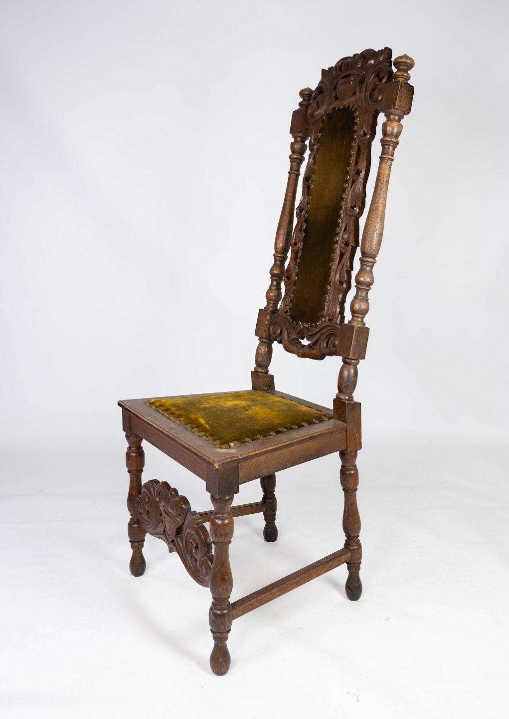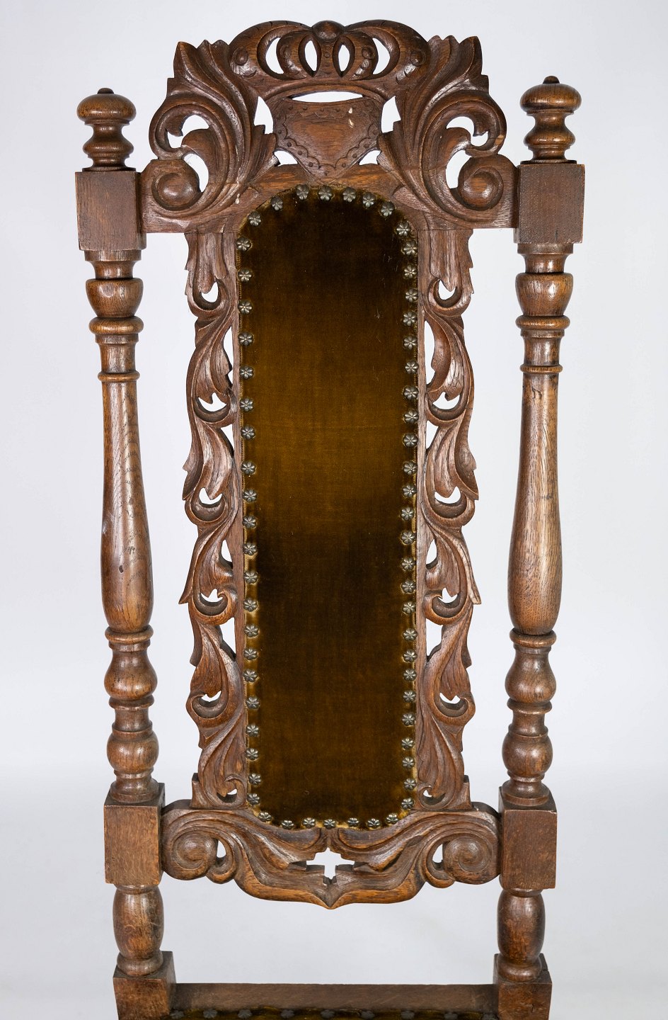 Antiker Stuhl aus Eiche mit Schnitzereien im Renaissancestil, aus den 1880er-Jahren. Der Stuhl befindet sich in sehr gutem Zustand.