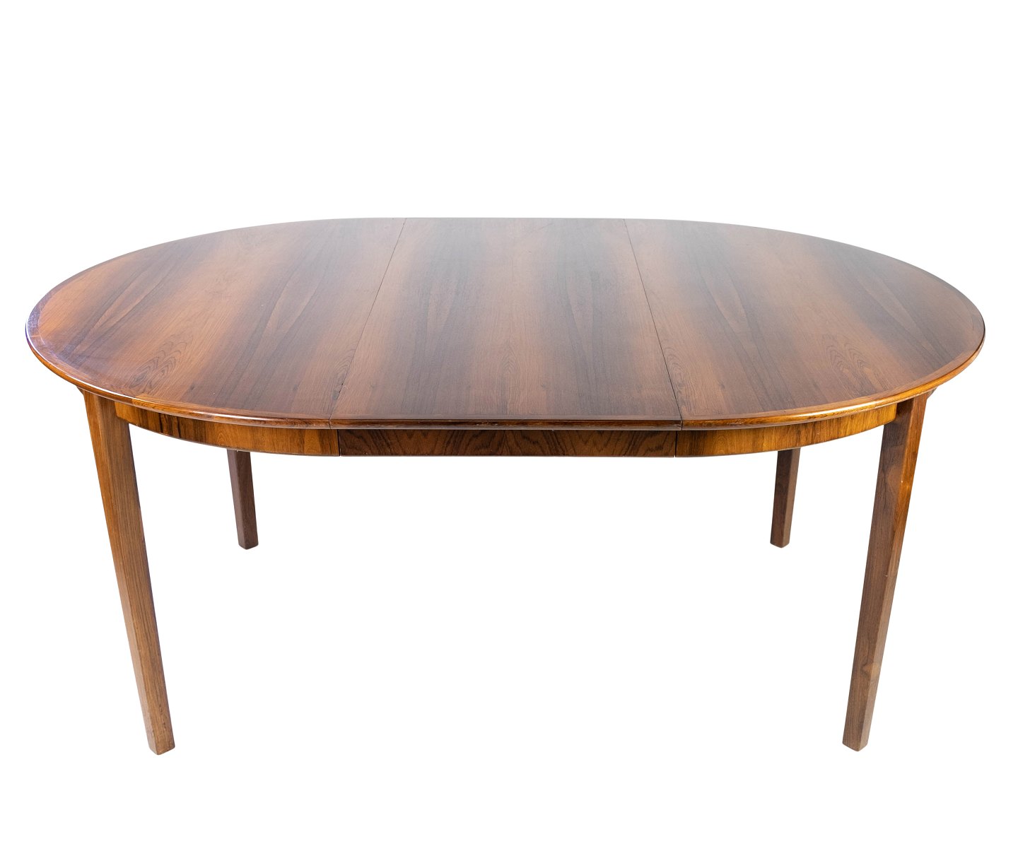 Spisebord i palisander med tre udtræksplader, af dansk design fra 1960erne. Bordet er i flot brugt stand.