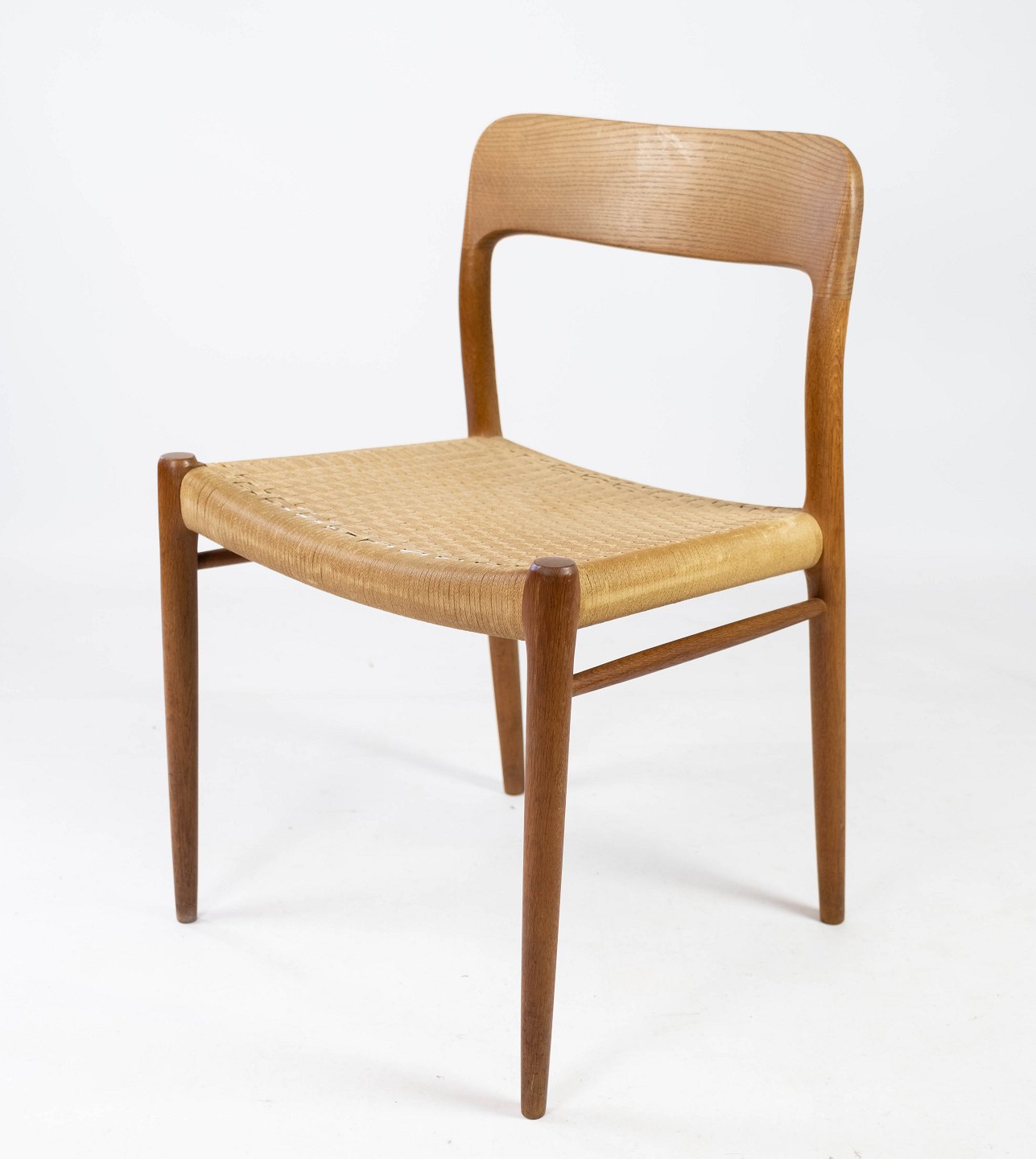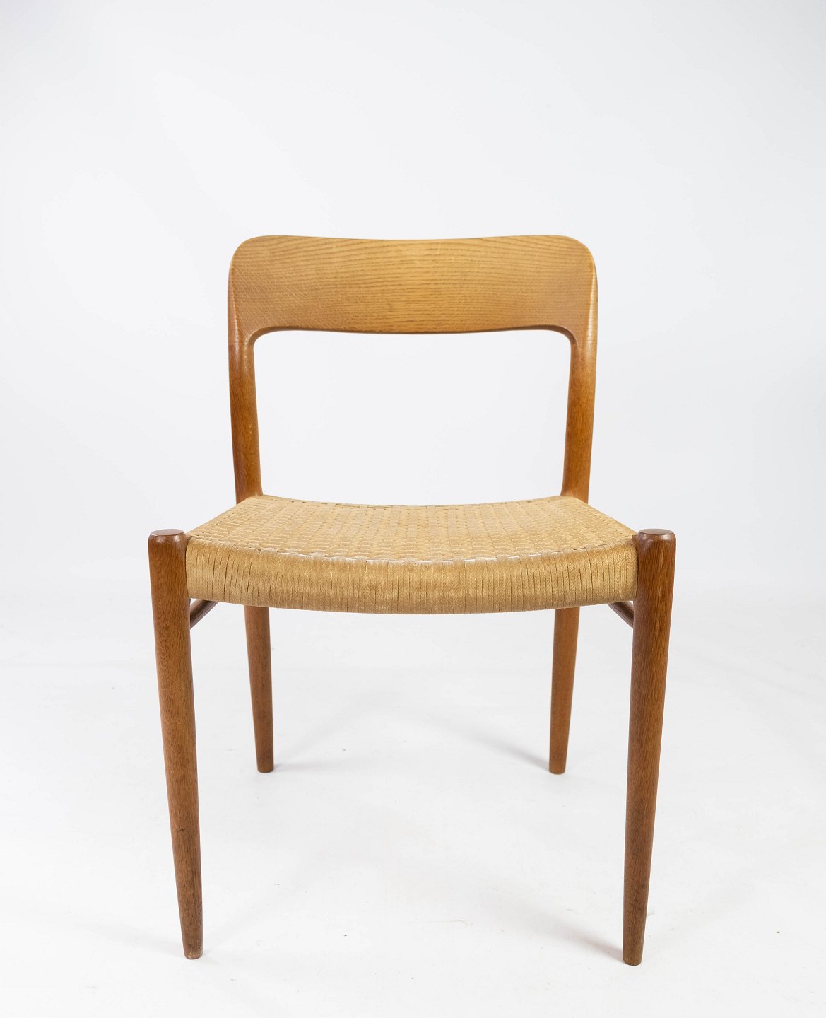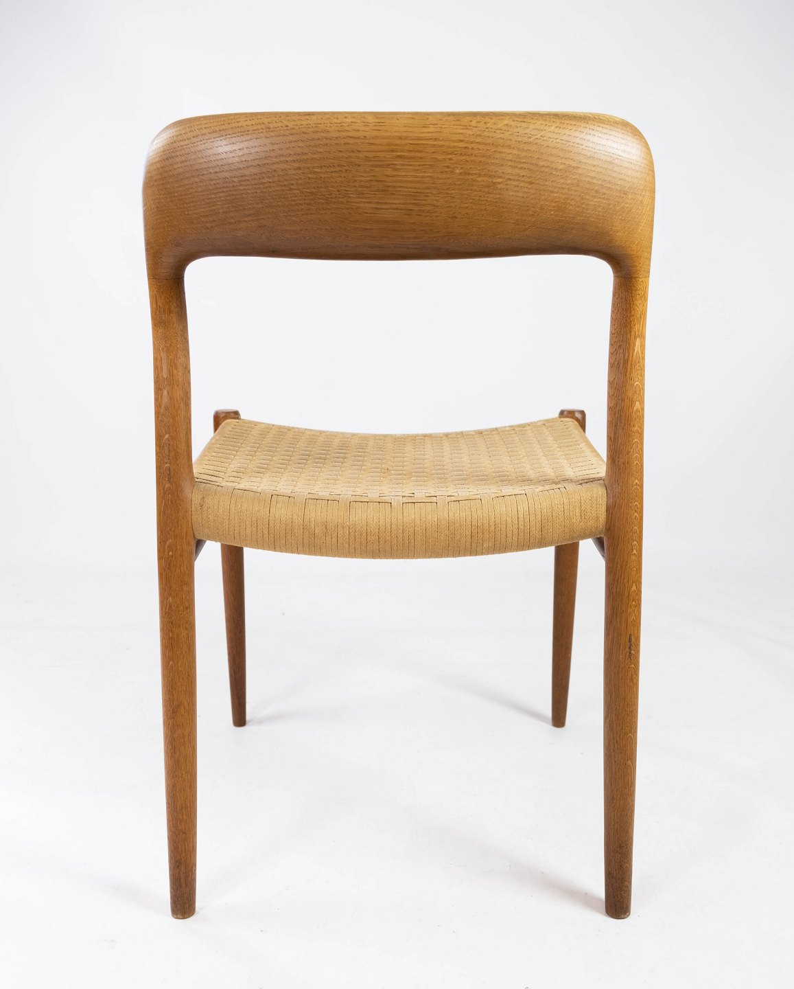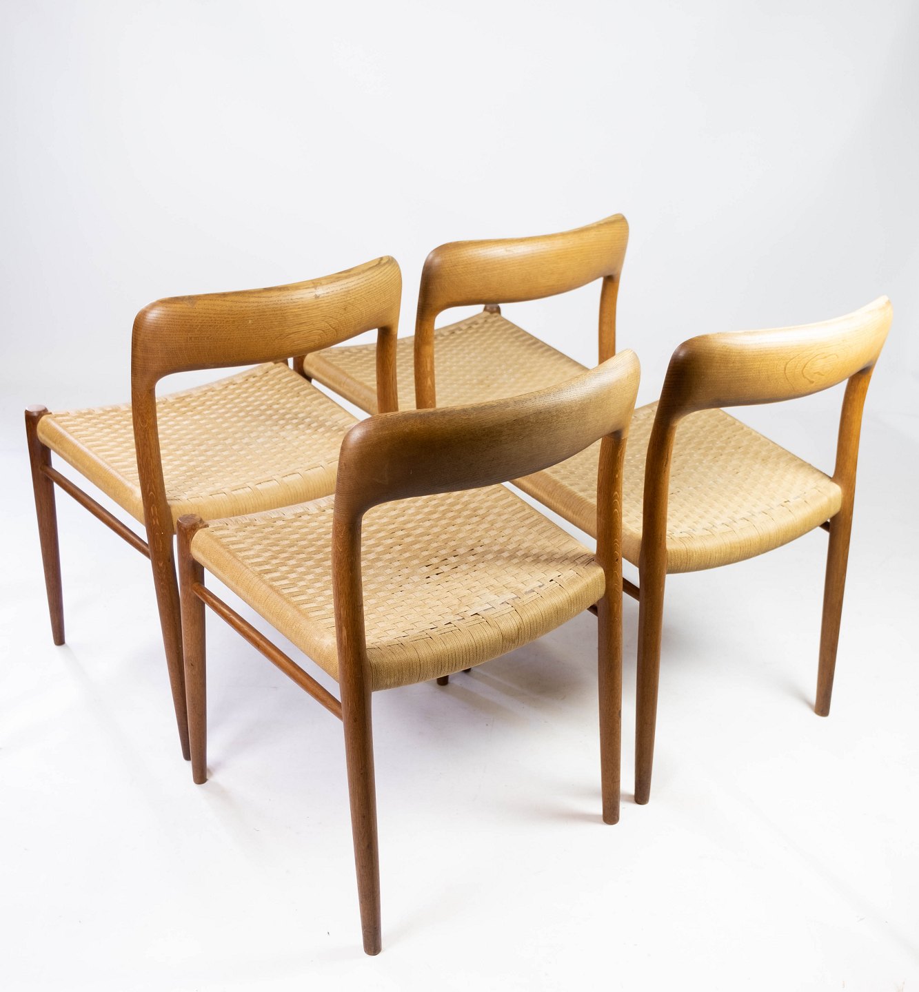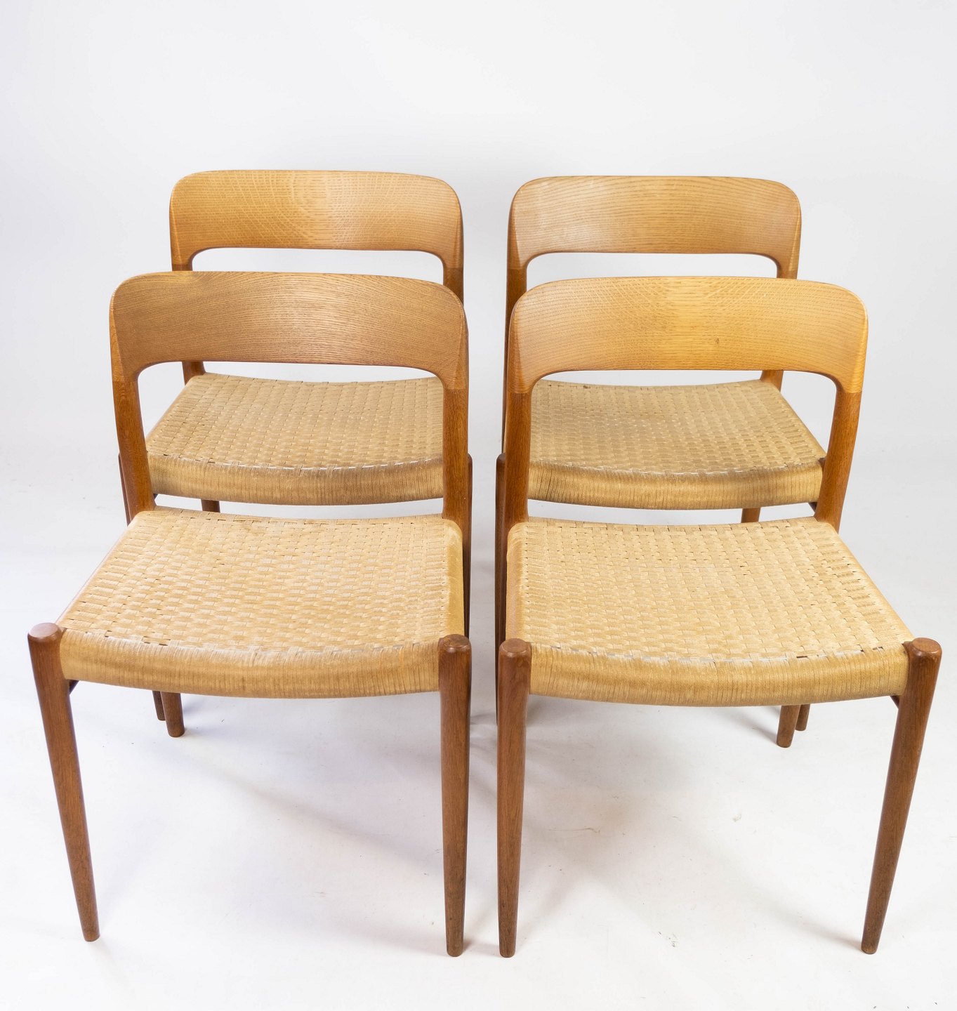 SoldA set of four dining chairs, model 75, in oak and papercord designed by N.O. Møller from the 1960s. The chairs are in great vintage condition.