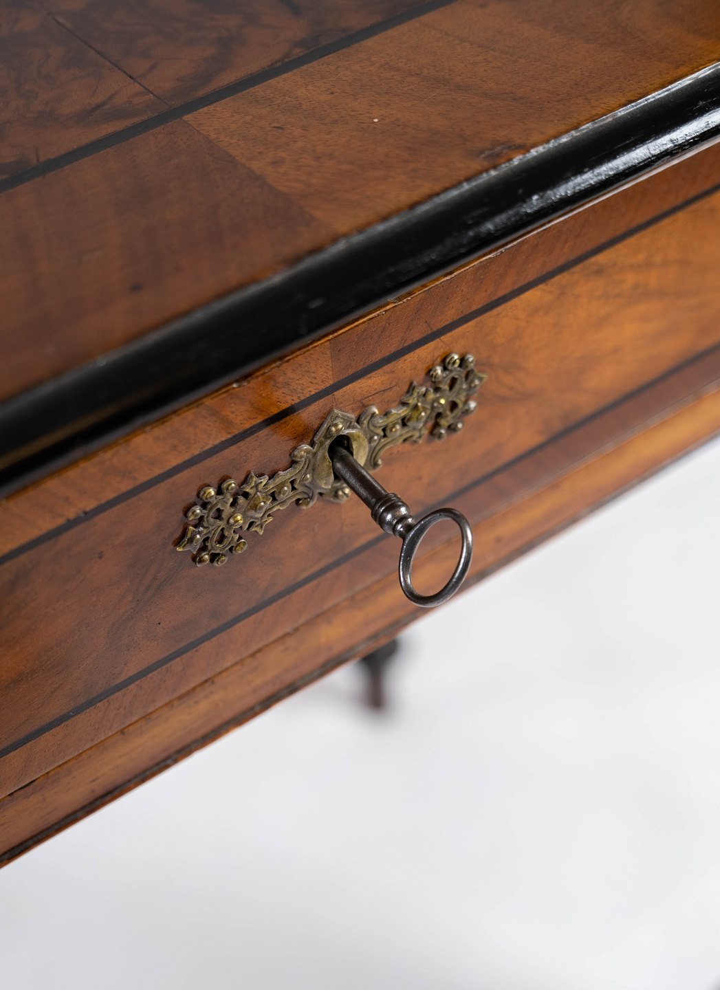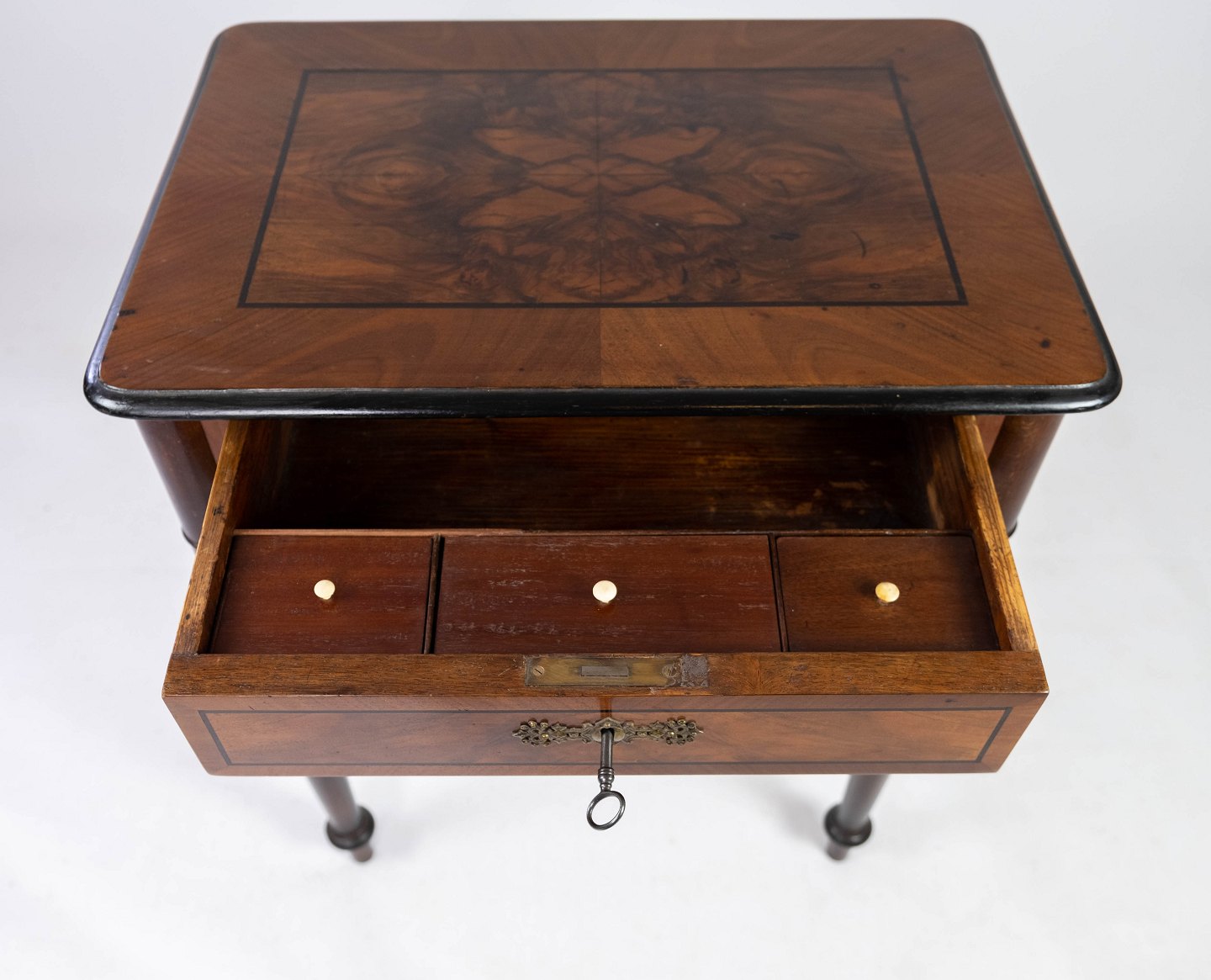 SoldSide table in mahogany with inlaid walnut and ebony, in great vintage condition from 1860.
