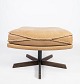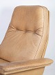 En lænestol og skammel, polstret med lyst kernelæder og med stel i palisander, af dansk design fra 1960'erne, udstråler en tidløs elegance og enkelhed, der er kendetegnende for den skandinaviske designtradition.