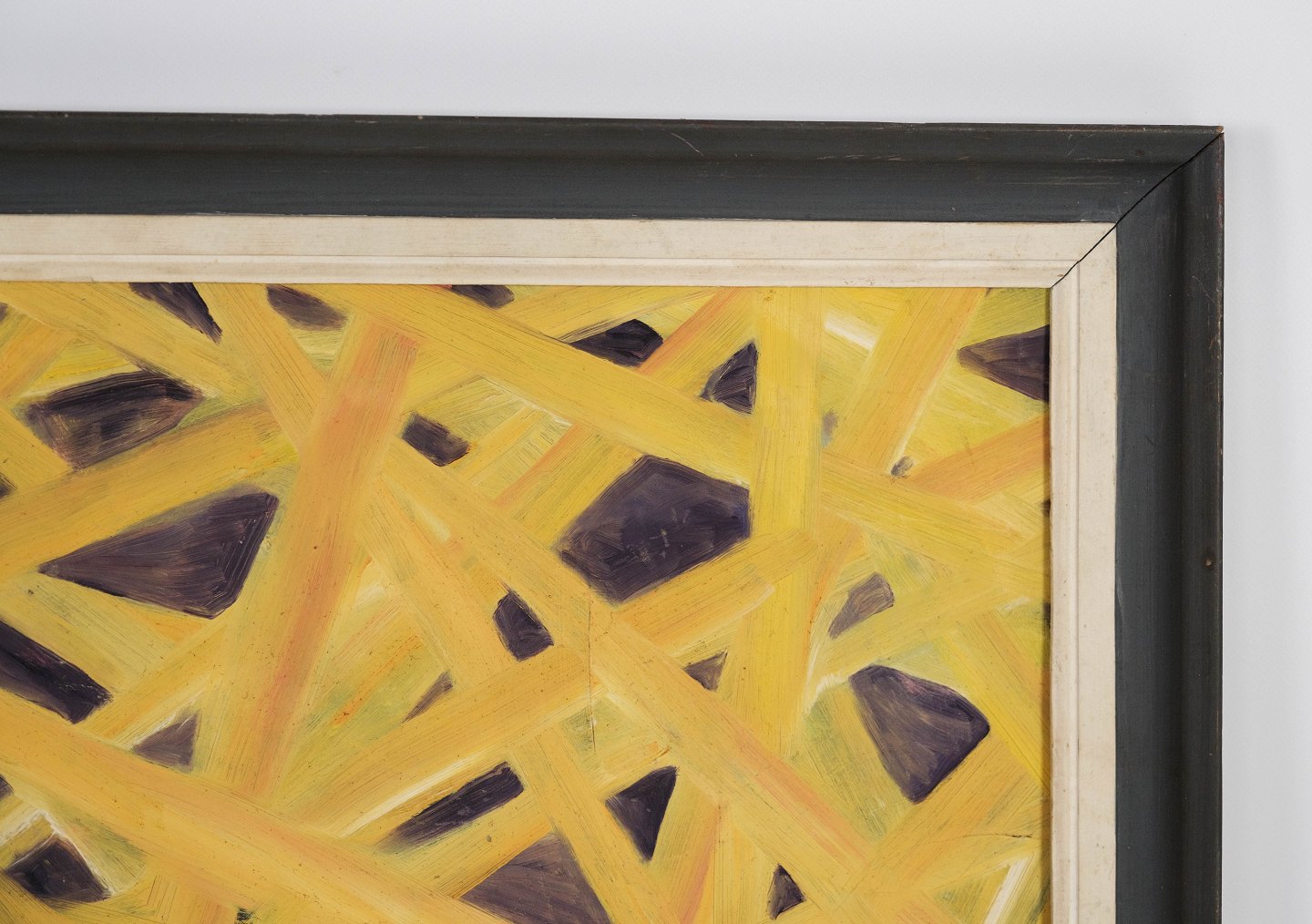 Painting in yellow colors with dark wooden frame from the 1970s.
