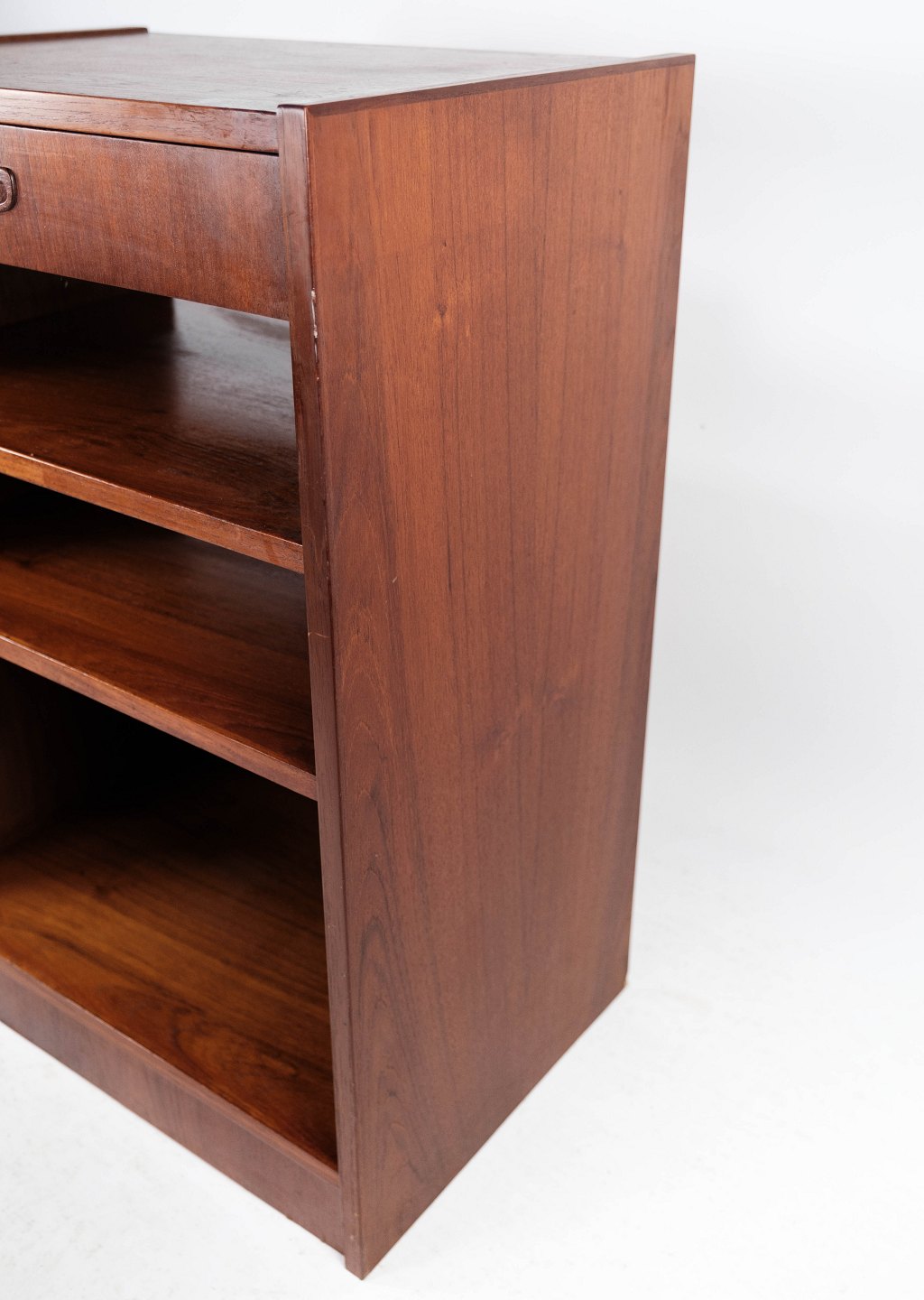 Sengebord i teak af dansk design fra 1960erne. Bordet er i flot brugt stand.