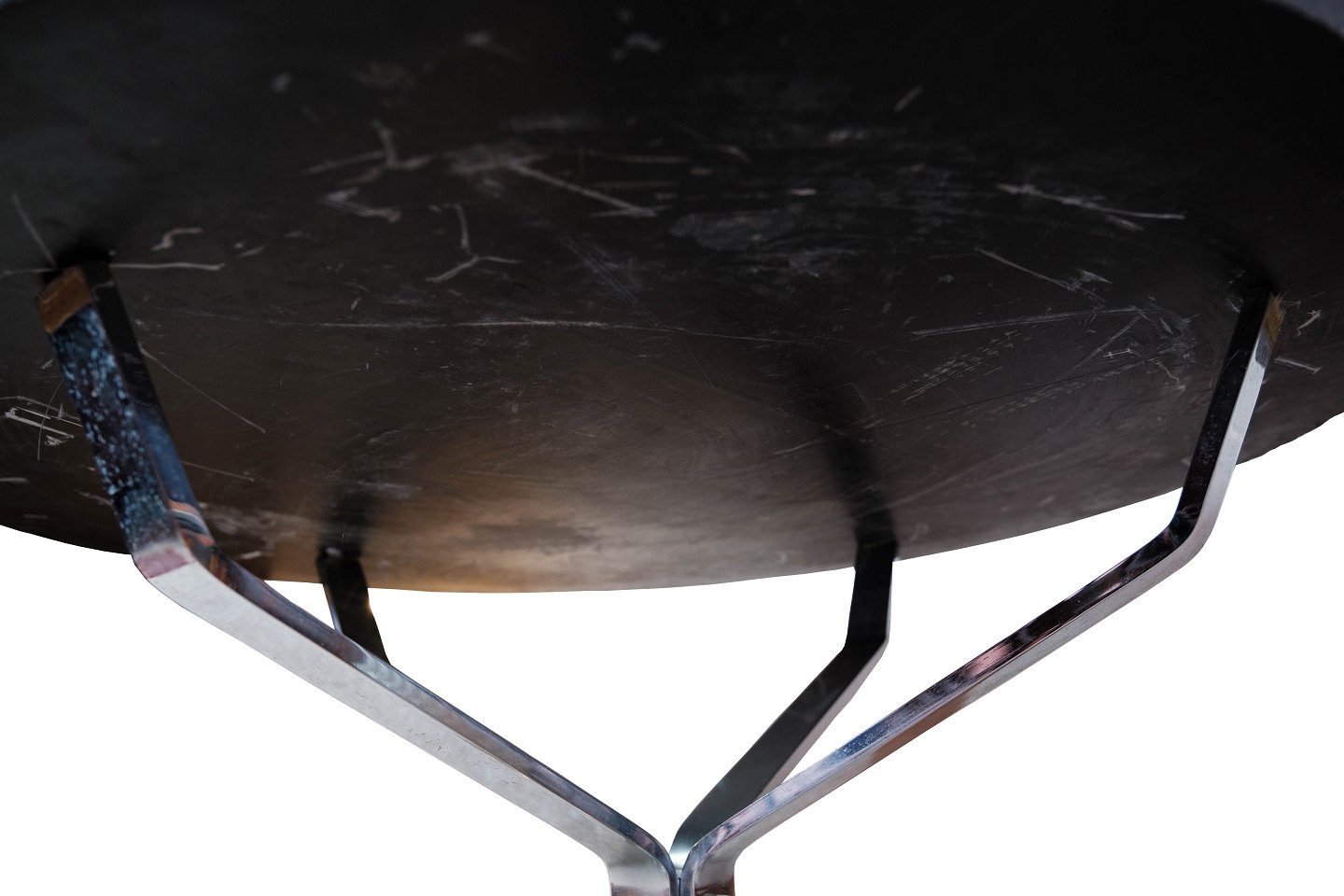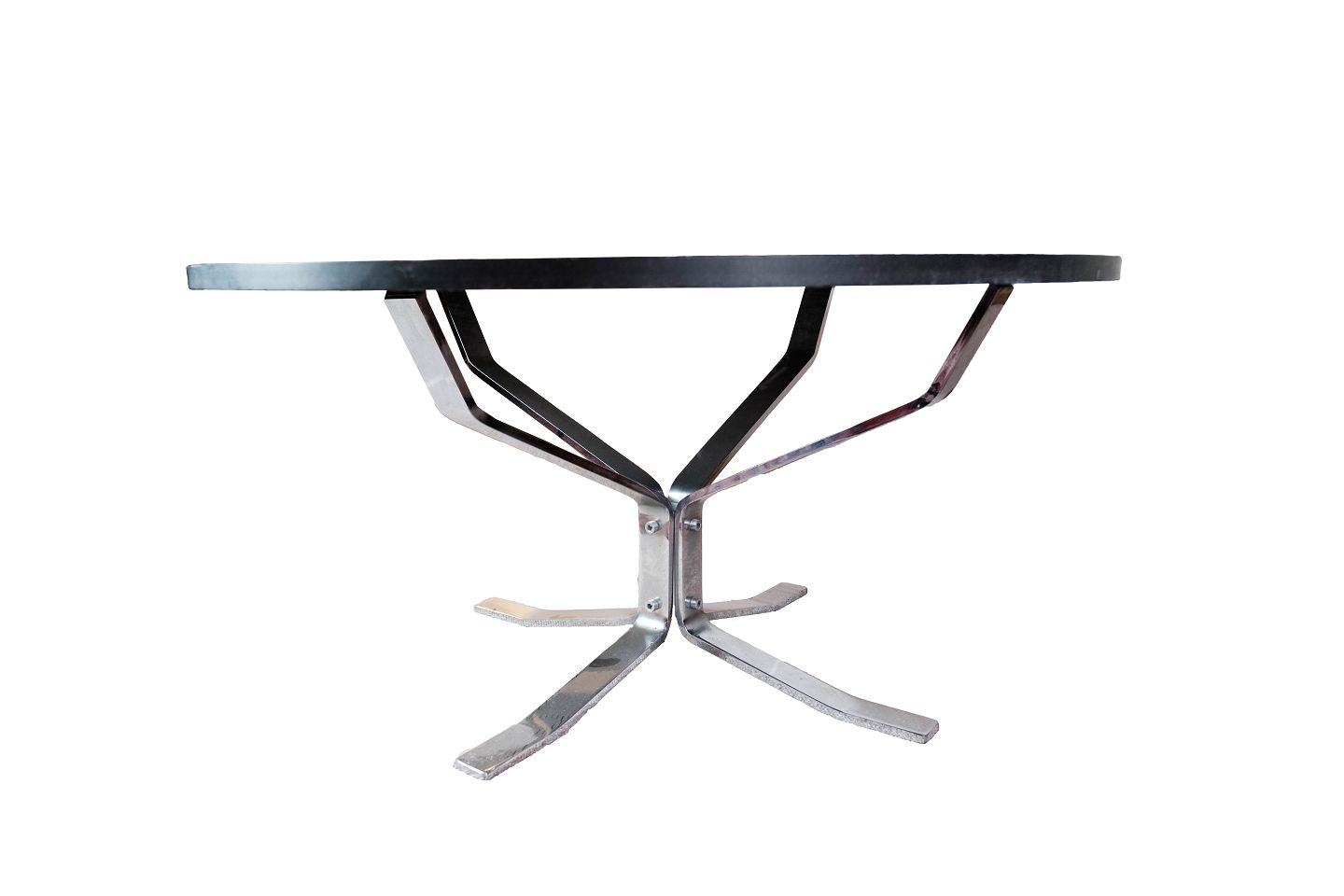Round coffee table with black slate plate and designed by Sigurd Ressell Falcon. The table is in great vintage condition.