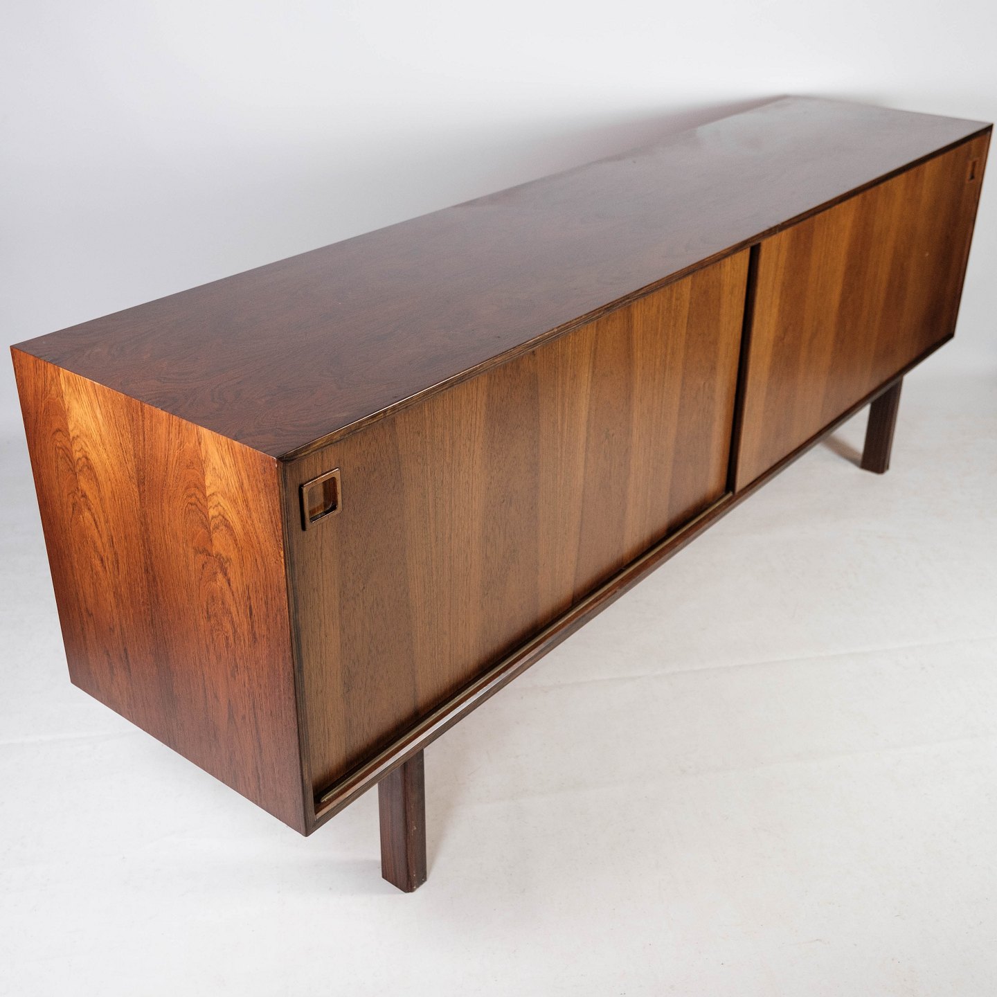 Skænk i palisander med skydelåger designet af Omann Junior fra 1960erne.