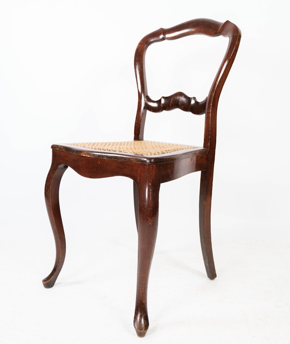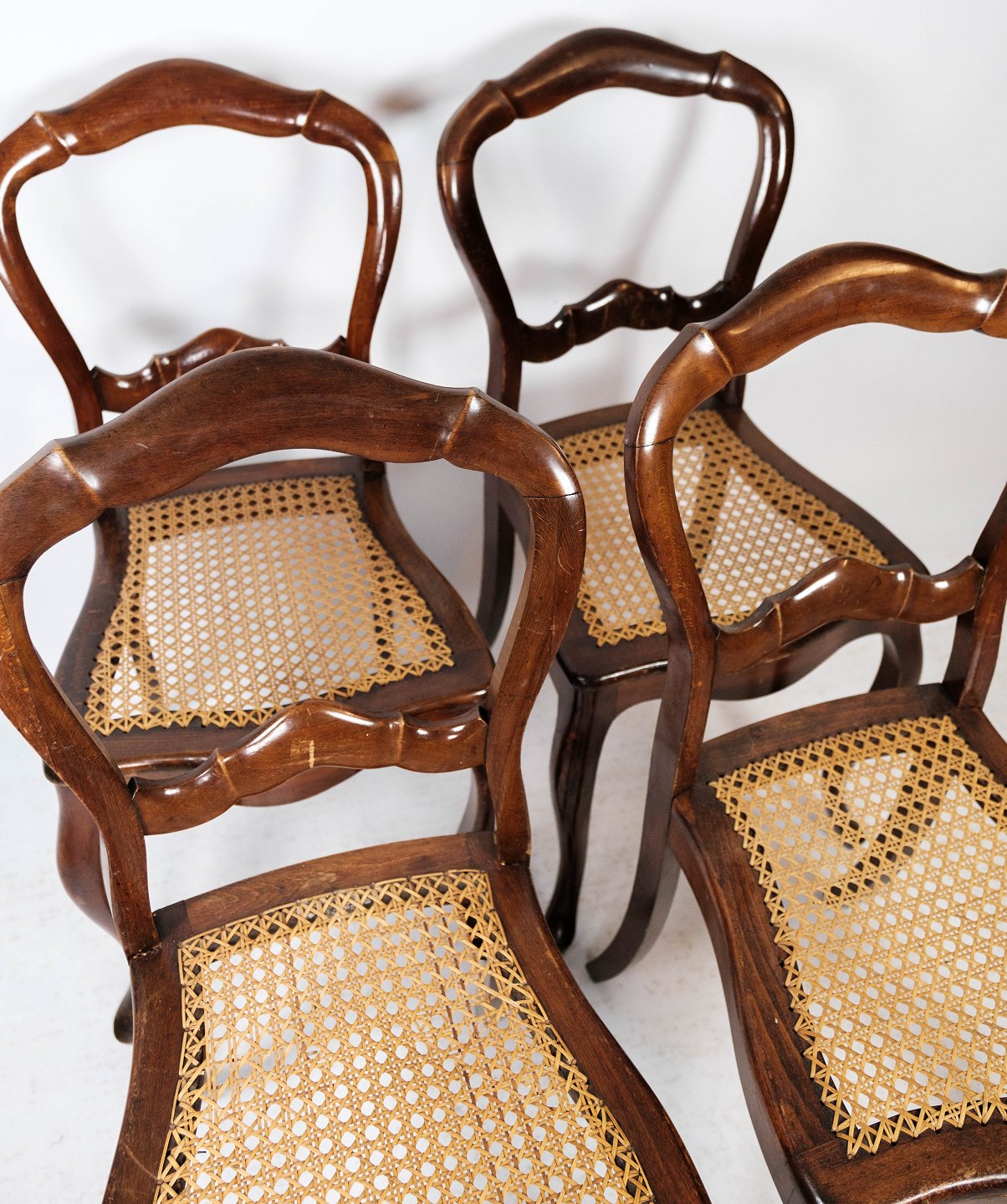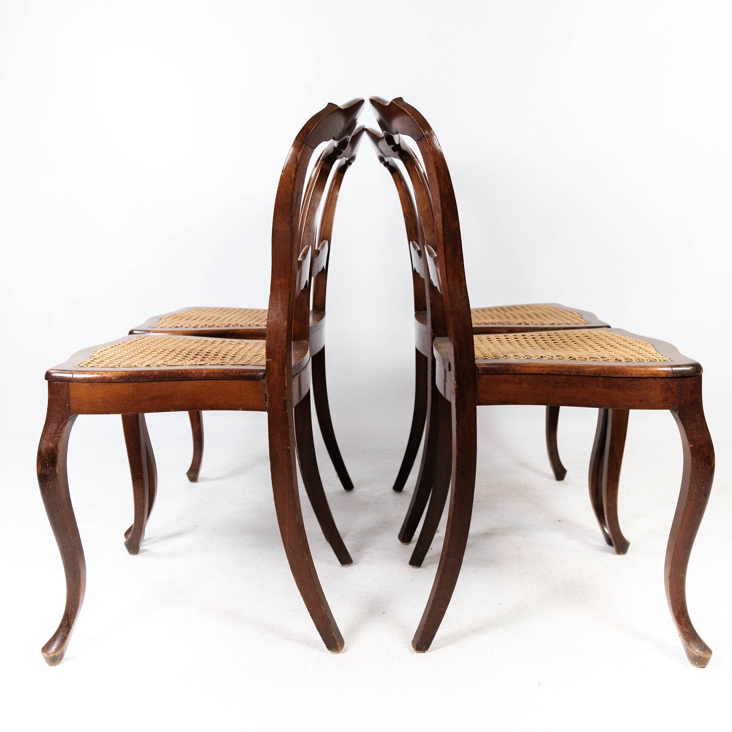 SoldSet of four rococo dining room chairs of mahogany and with seat of paper cord from 1860. The chairs are in great vintage condition.
