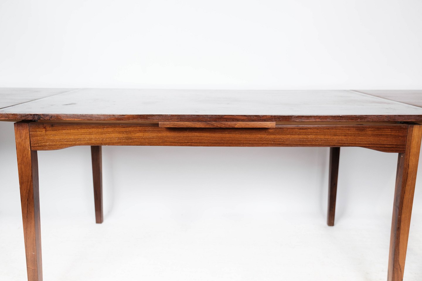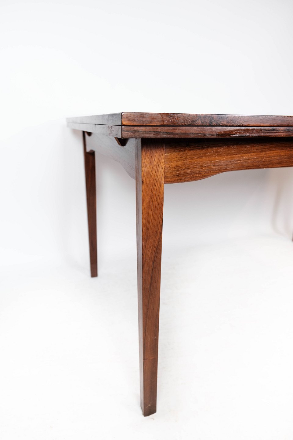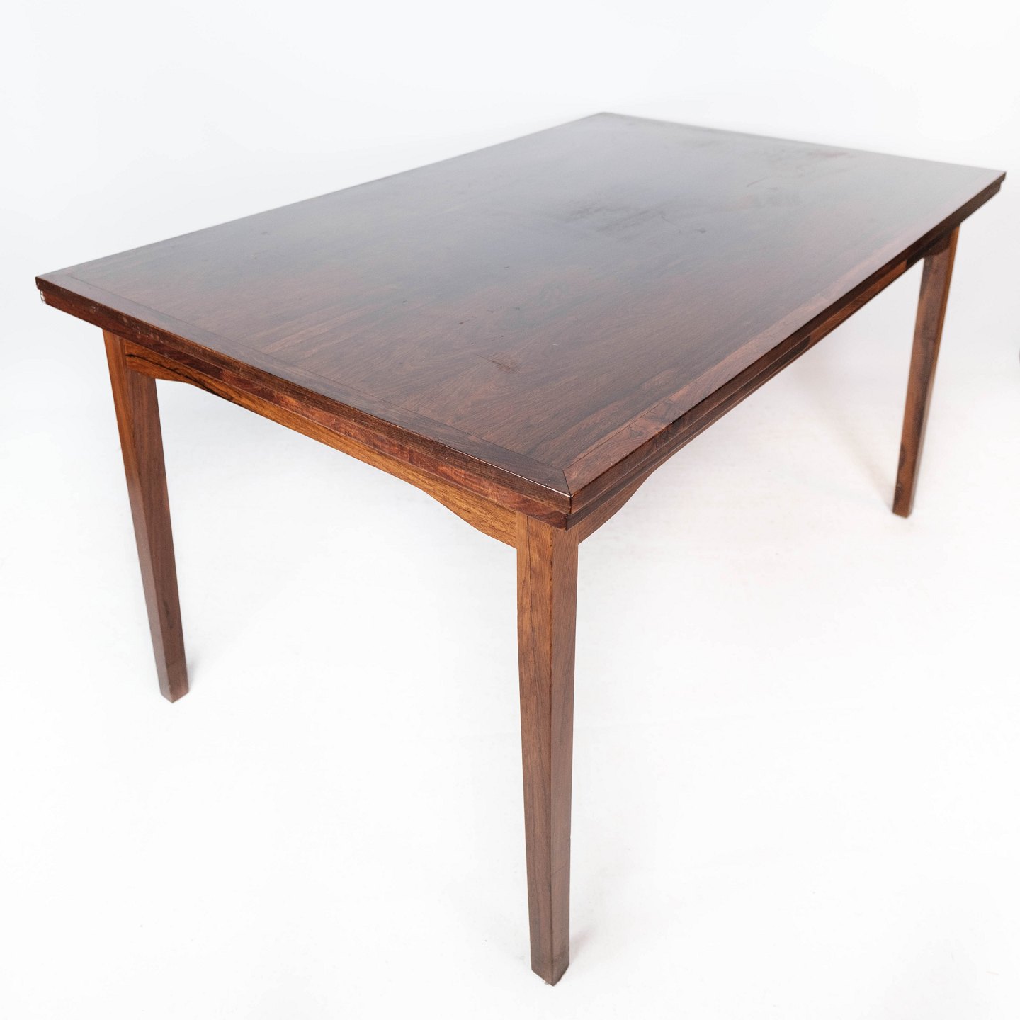 Dette spisebord i palisander fra 1960'erne er et smukt og funktionelt tilføjelse til enhver spisestue. Med sit enkle design og udtræksfunktion tilbyder det ekstra plads til dine gæster, når det er nødvendigt.