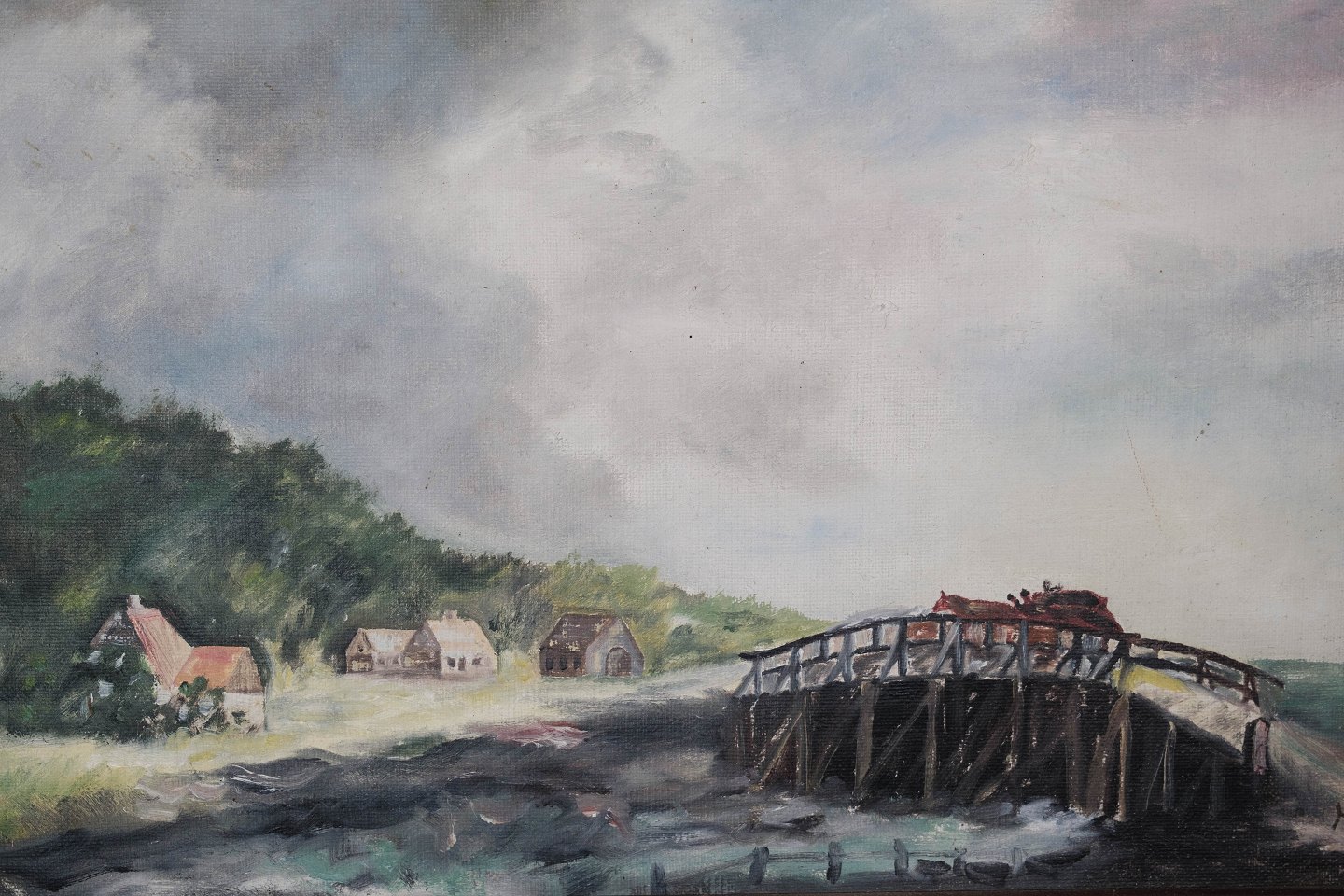 Painting on canvas with nature motif and wooden frame, signed H.O.