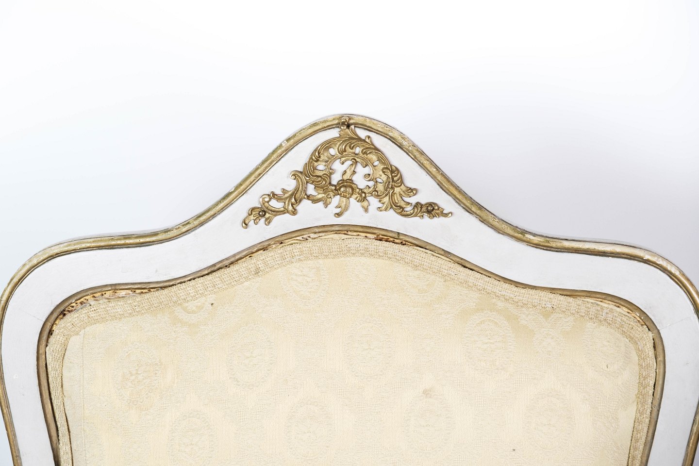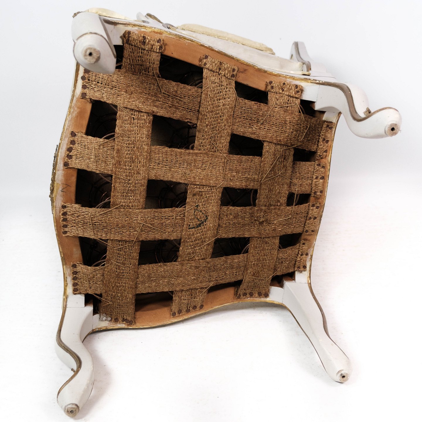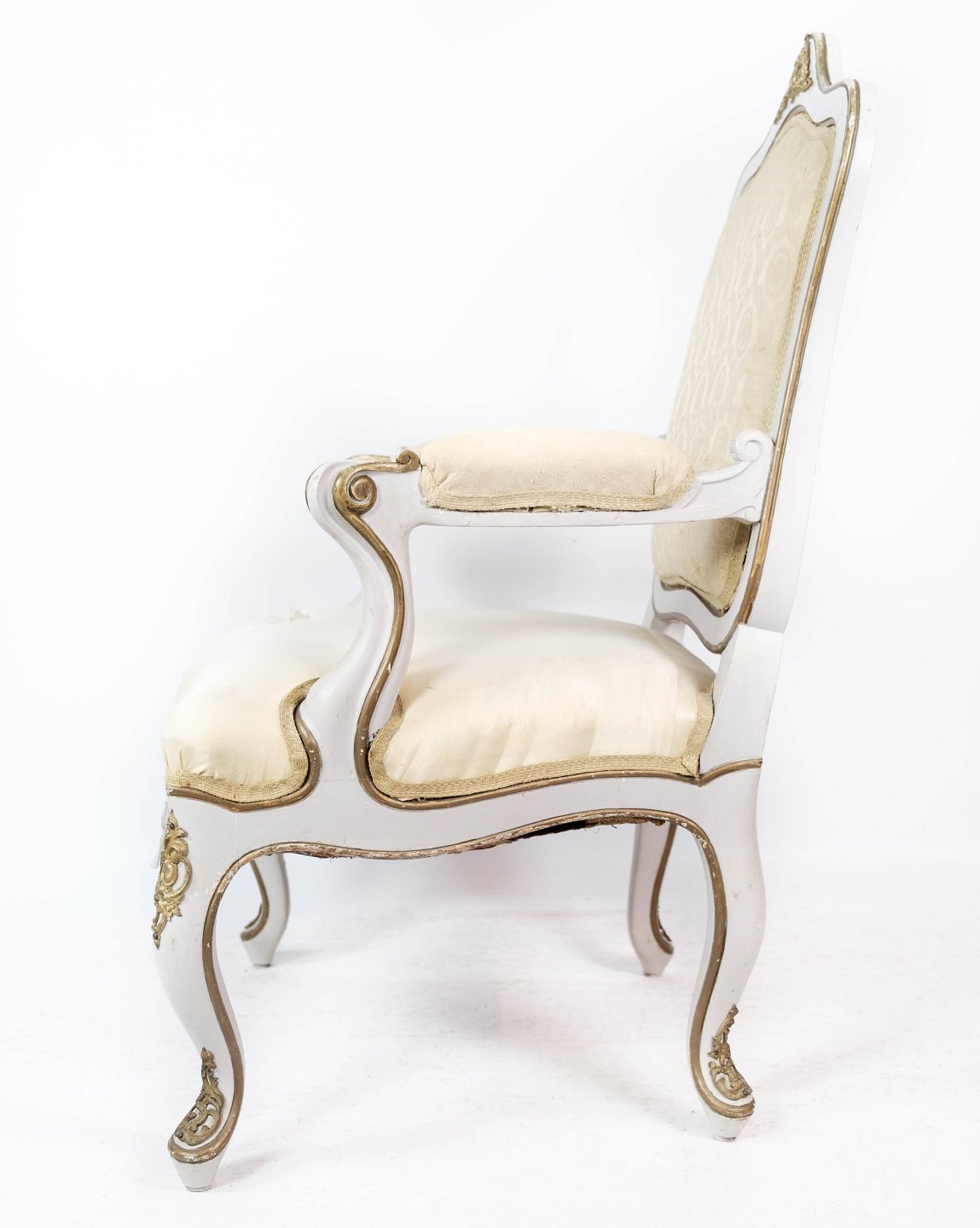 Armchair of white painted wood and upholstered with light fabric, in great antique condition from around 1880.