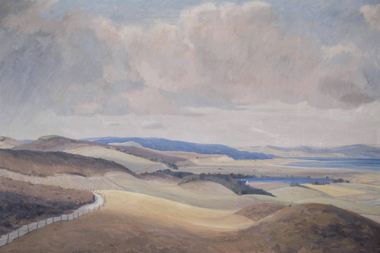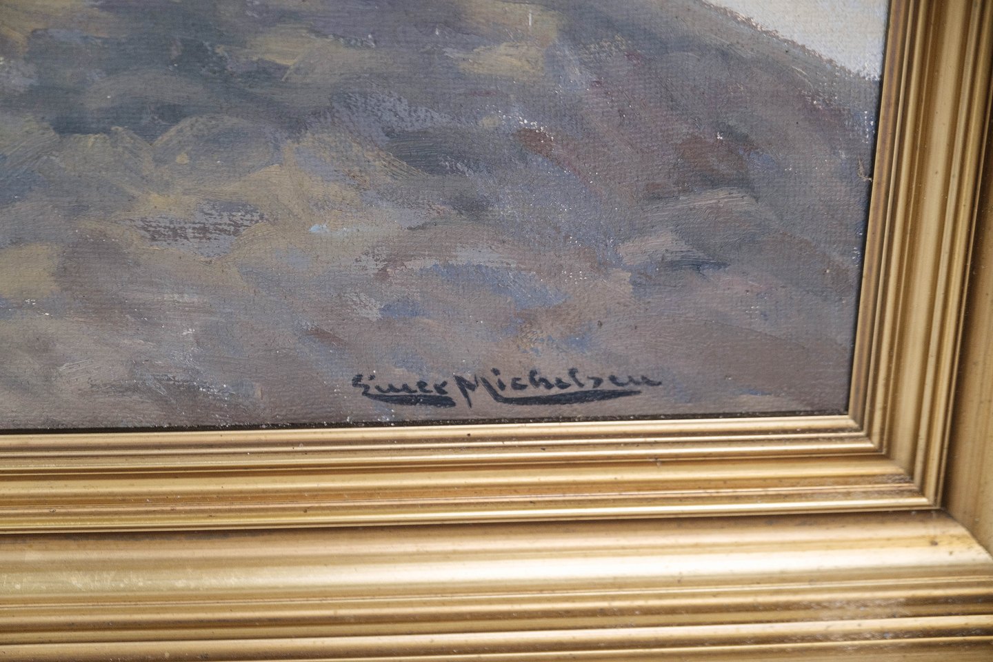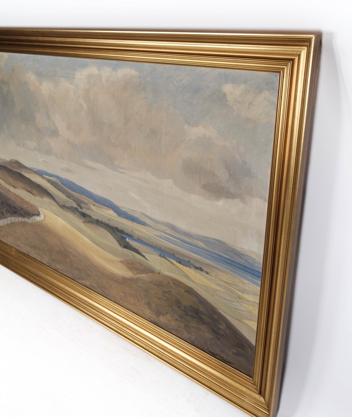 Stort oliemaleri med natur motiv og forgyldt ramme, signeret Einer Michelsen fra omkring 1920.