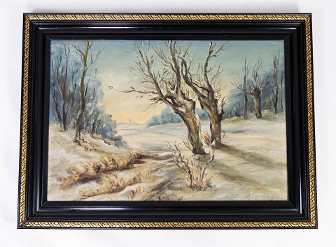 Højt oliemaleri på lærred i mørke farver af den dansk kunster Åse Højer, f. 1952.