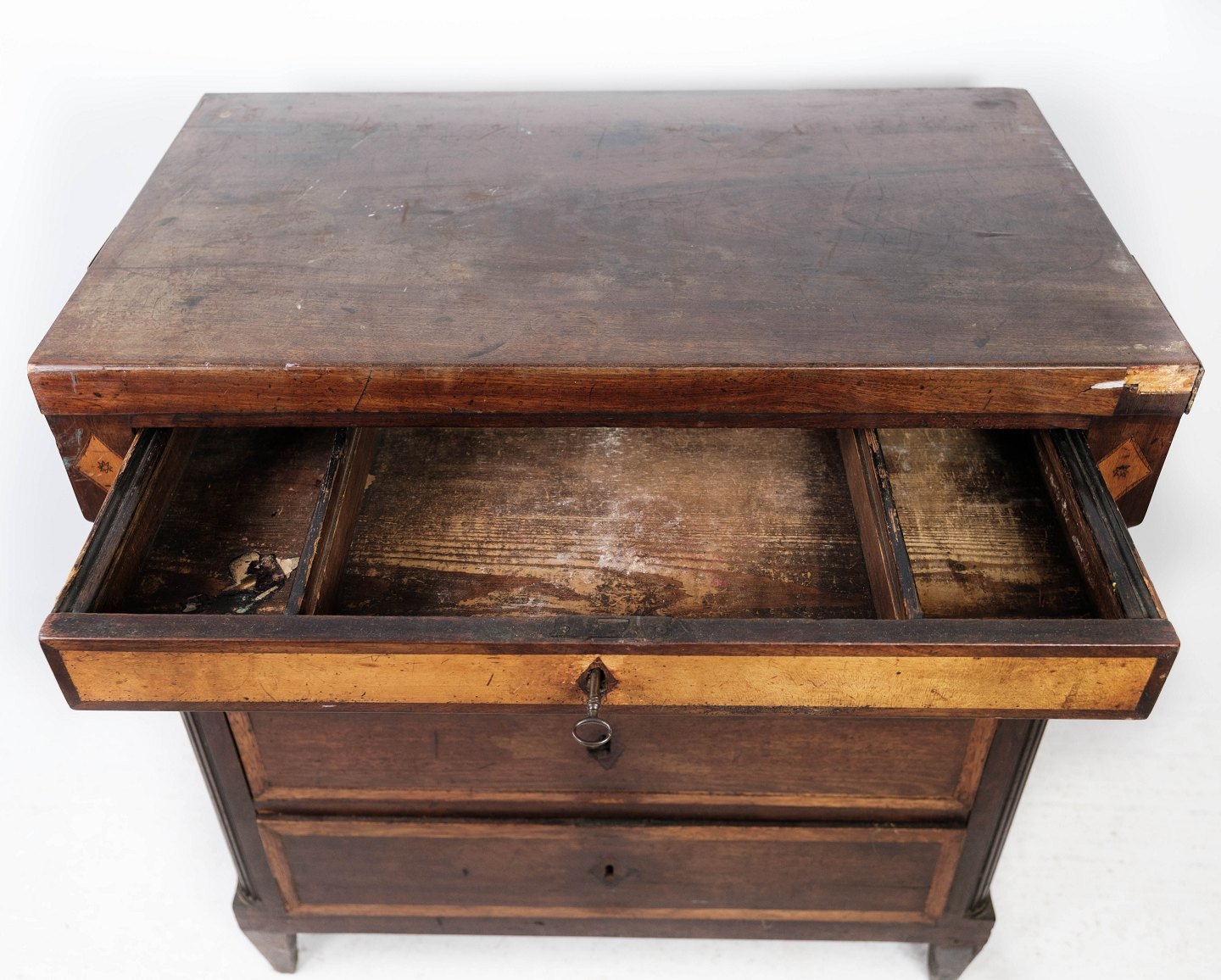 Louis Seize chest of drawers of mahogany with inlaid wood. The chest is in great antique condition.