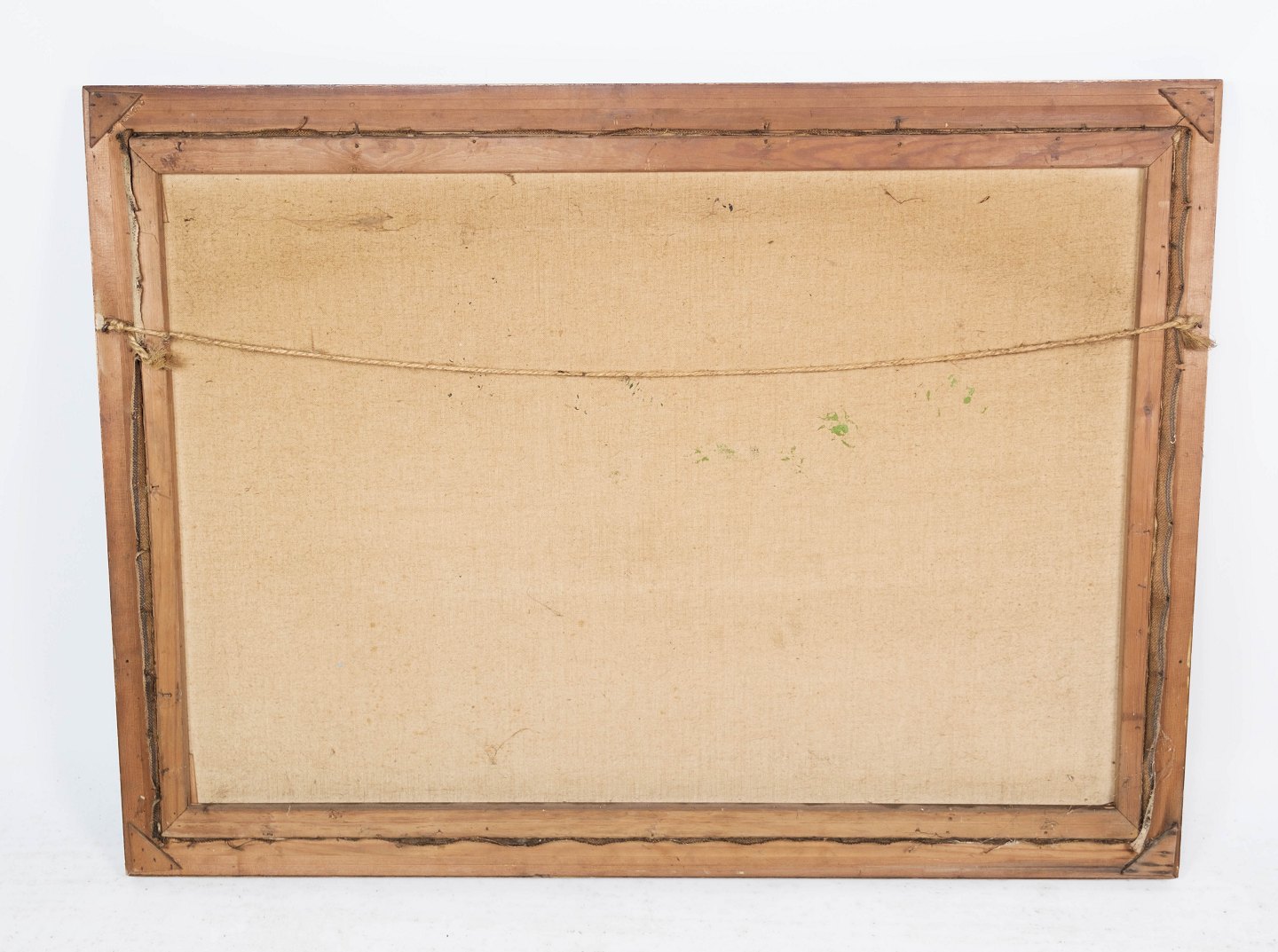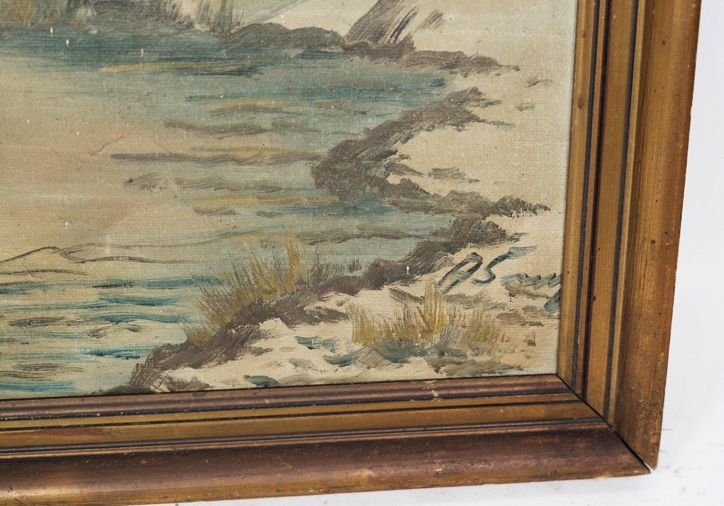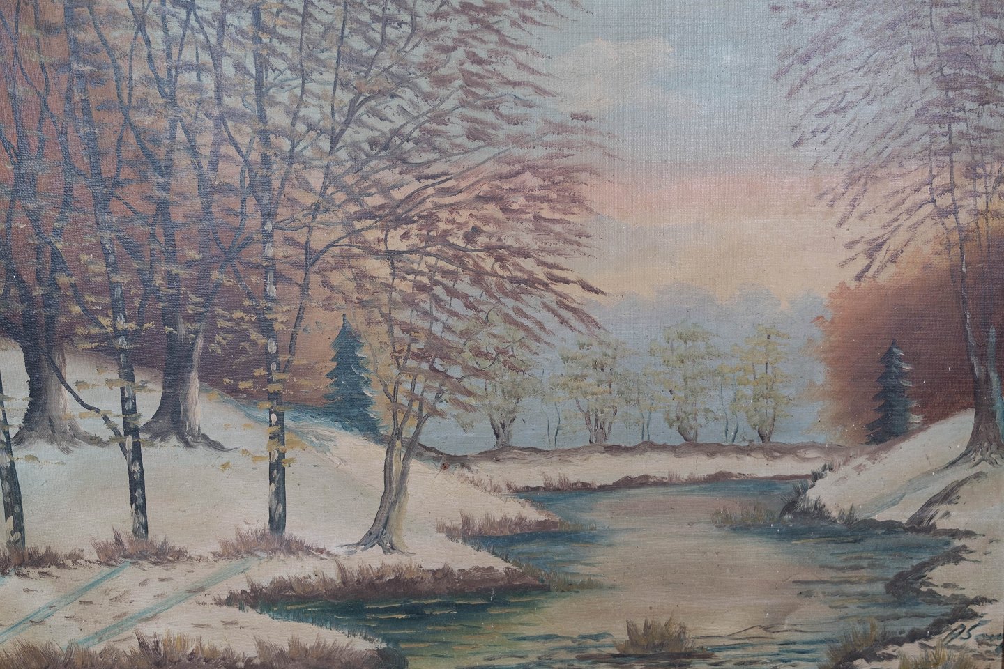Painting on canvas with winter motif and gilded frame, with unknown signature.