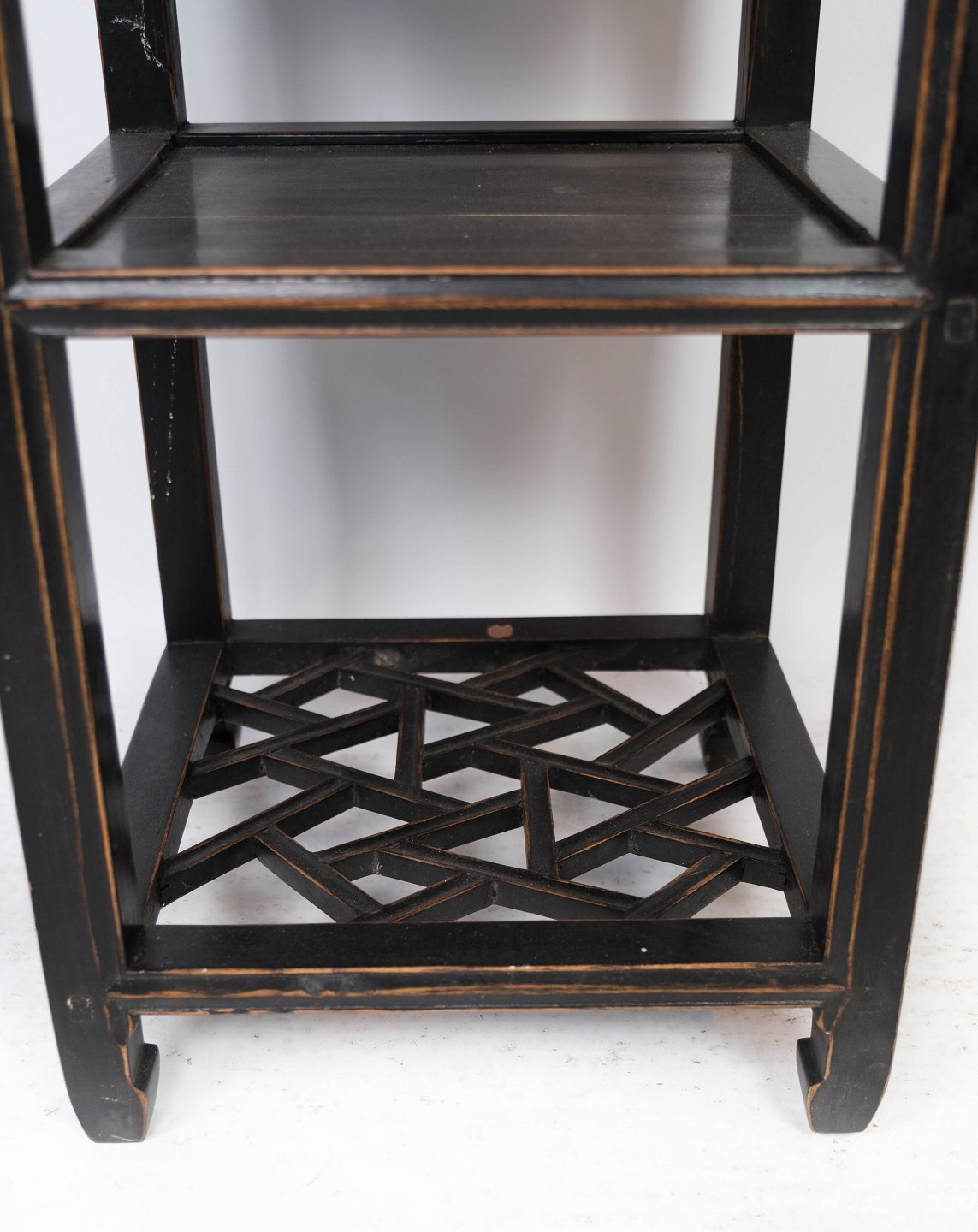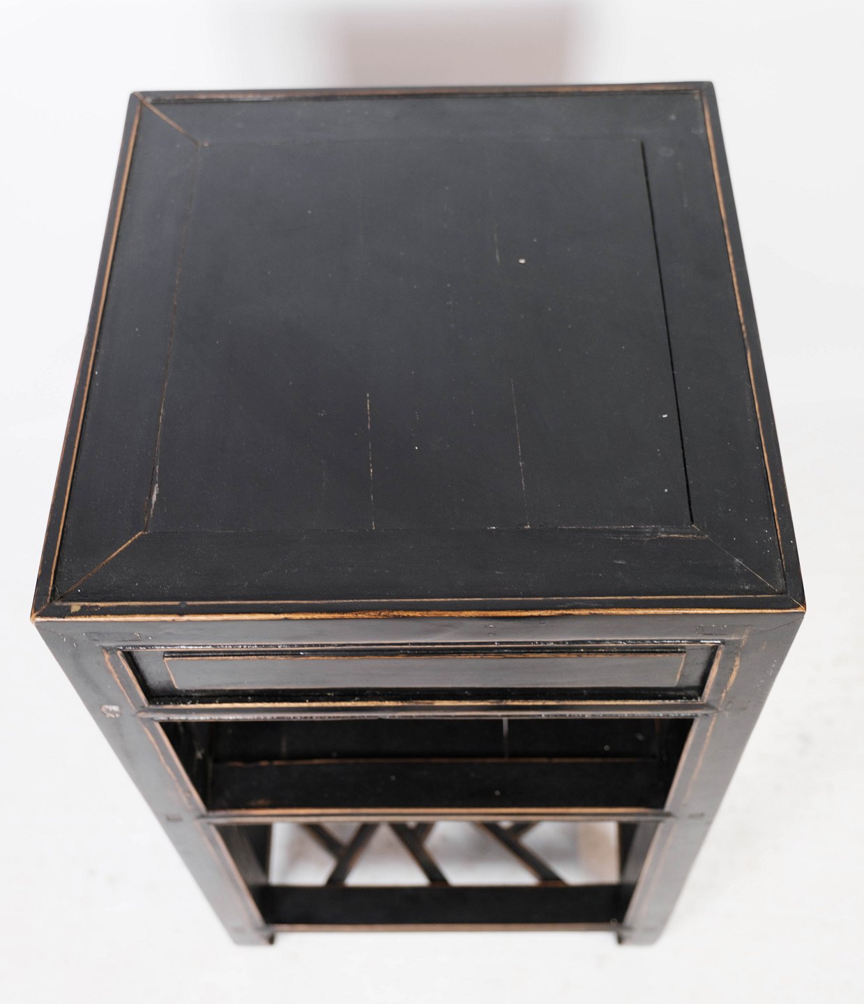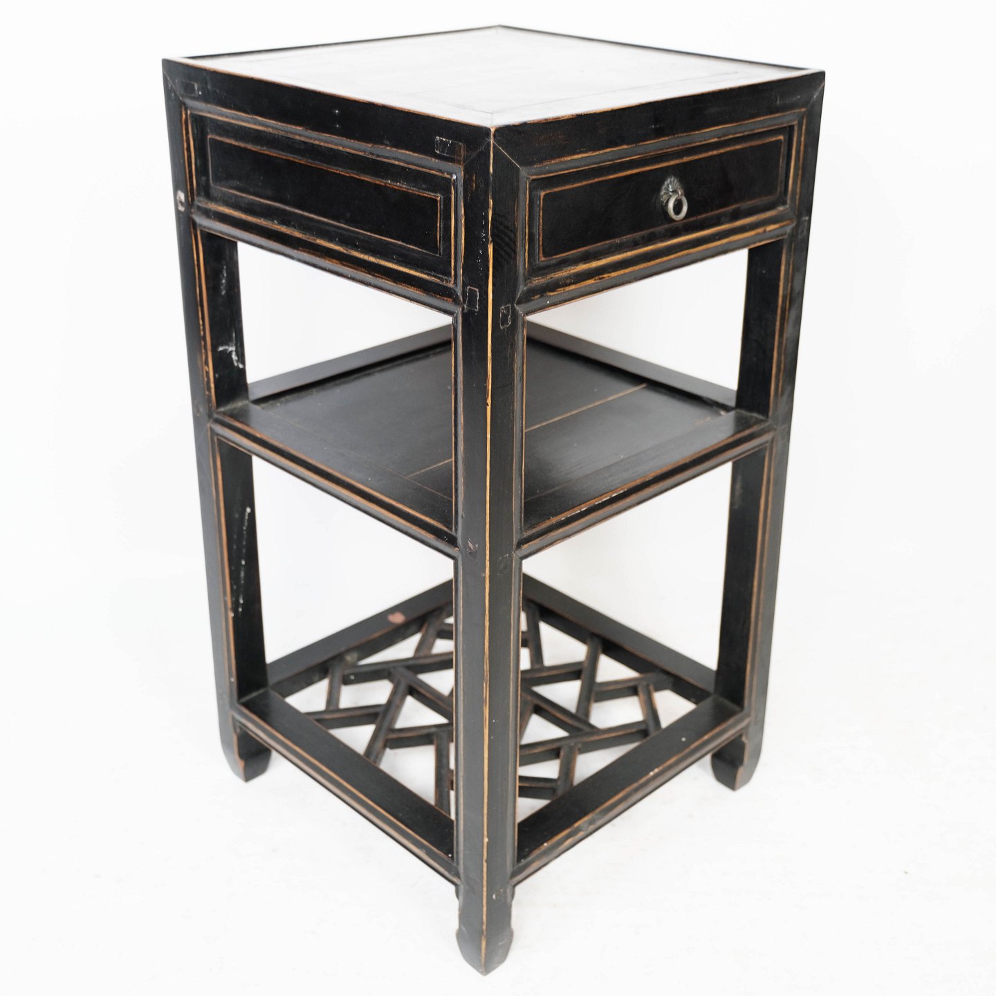 SoldChinese side table of black painted wood with patina from around the 1920s. The table is in great antique condition.