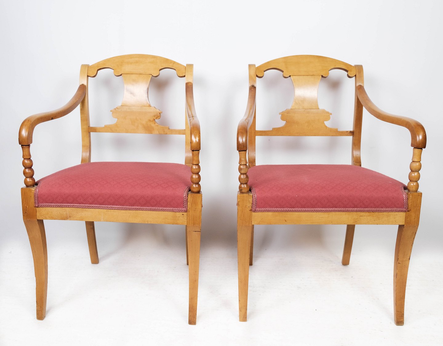 SoldA pair of Empire armchairs of birch wood and upholstered with velvet, from around the 1840s. The chairs are in great antique condition.