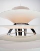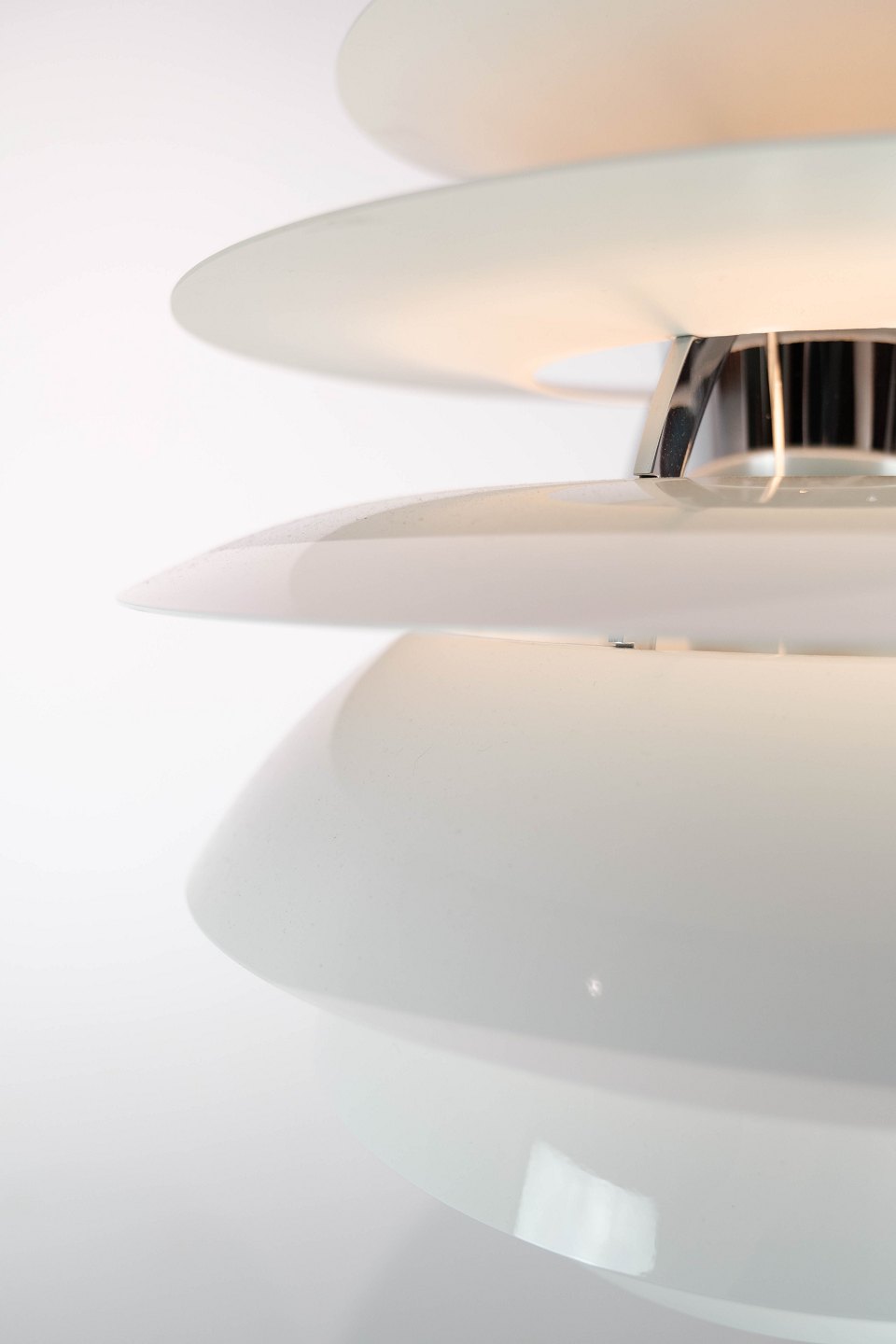 PH kuglelamel også kaldet Snowball i højglans hvid designet af Poul Henningsen og fremstillet af Louis Poulsen.