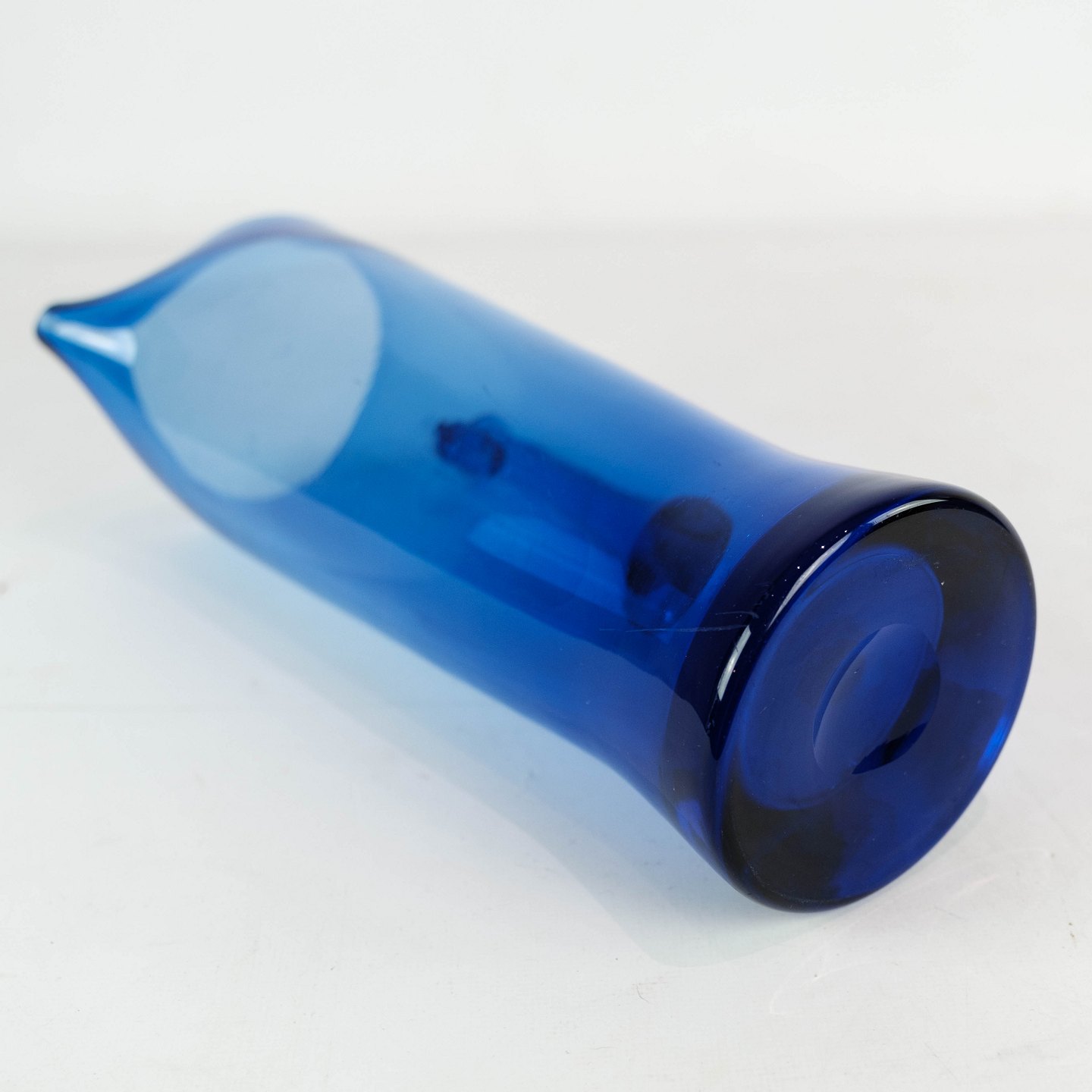 SolgtKande i mørkeblåt glas af Holmegaard. Kanden er i flot brugt stand.