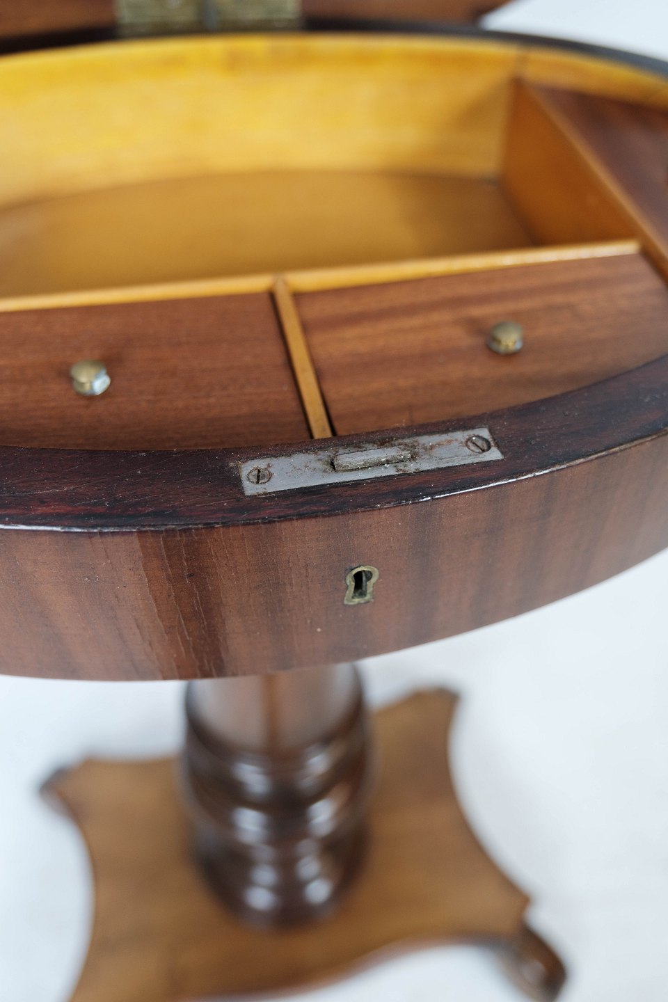 Beistelltisch aus dunklem Holz mit Stauraum, in sehr gutem antiken Zustand.