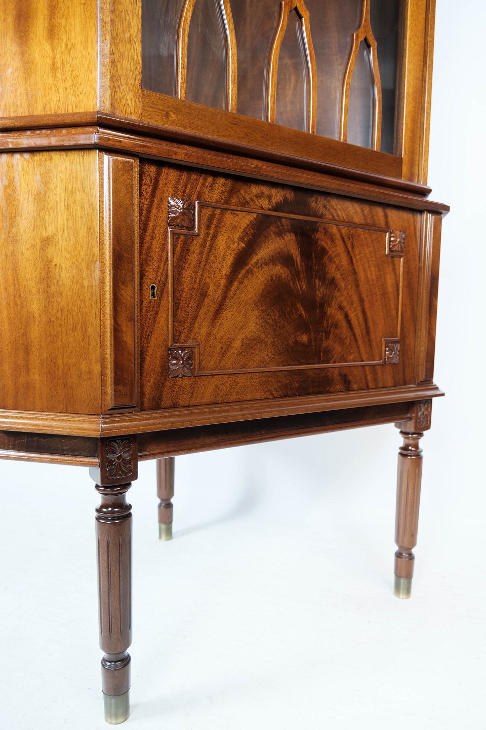 Hepplewhite hjørneskab af mahogni og glas med sprosser, i flot antik stand fra 1920erne.