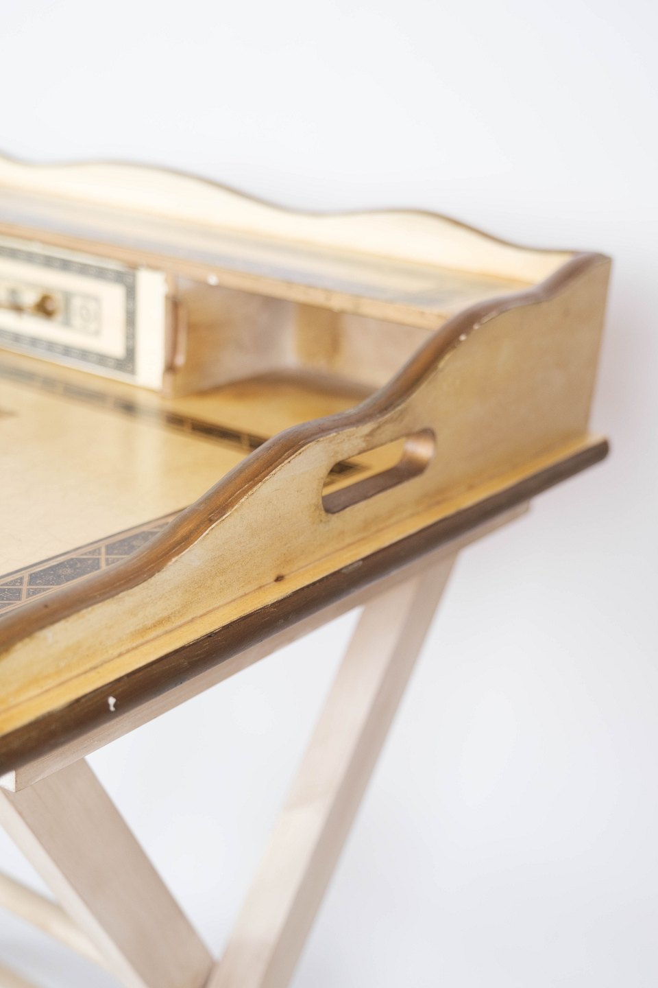 Smaller desk in light colors, in great antique condition. The table can be folded together.
