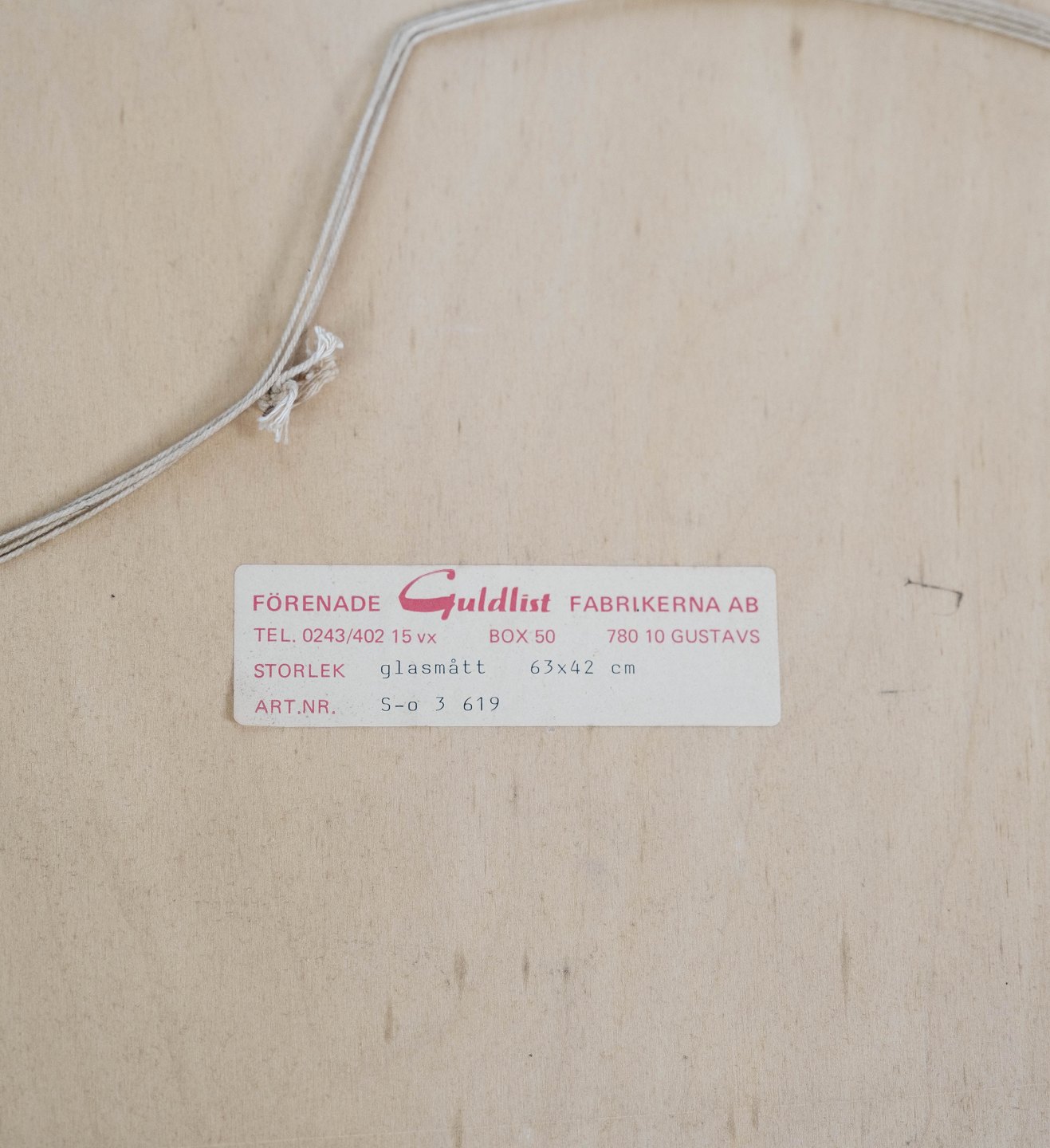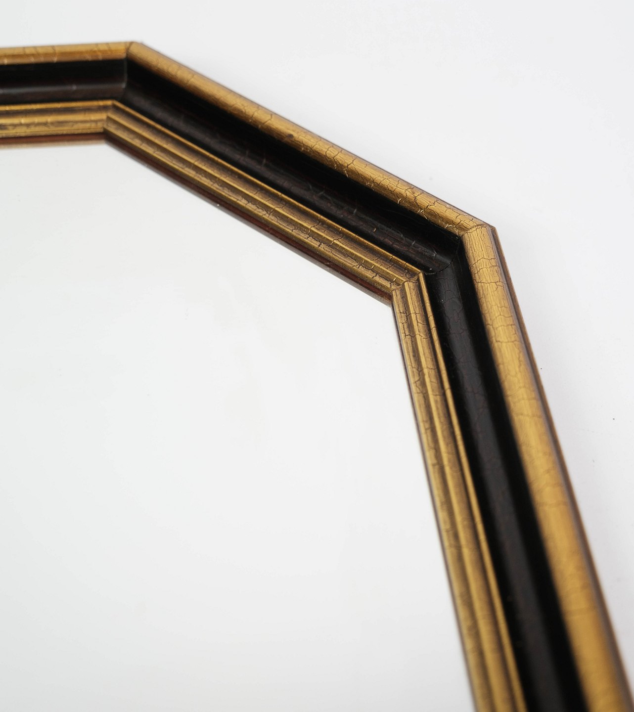 Edged mirror of black and gold painted wood of Danish design from the 1960s.
