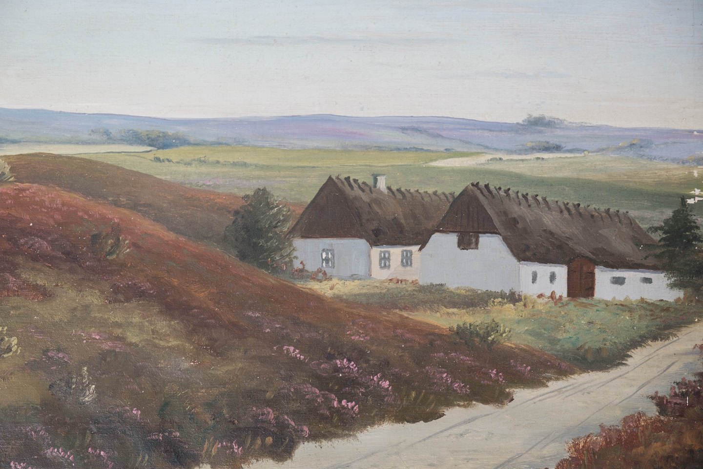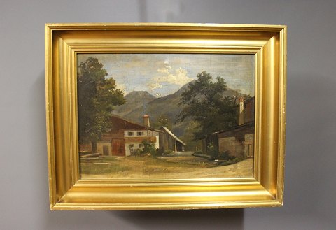 Painting on canvas with country motif and gilded frame, with unknown signature from the 1920s.