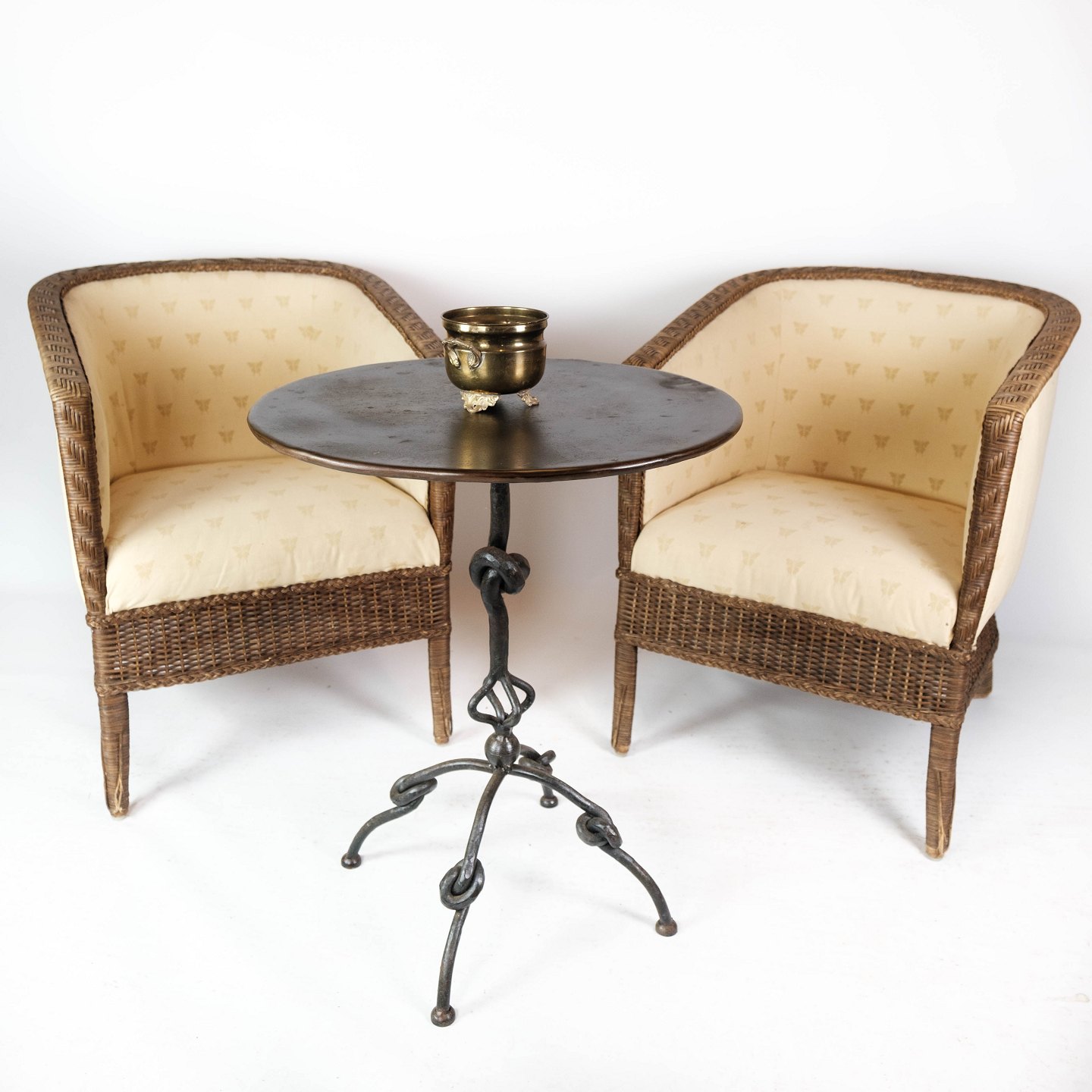 SoldSet of two easy chairs with paper cord and upholstery with light fabric from the 1940s. Both chairs are in great vintage condition.