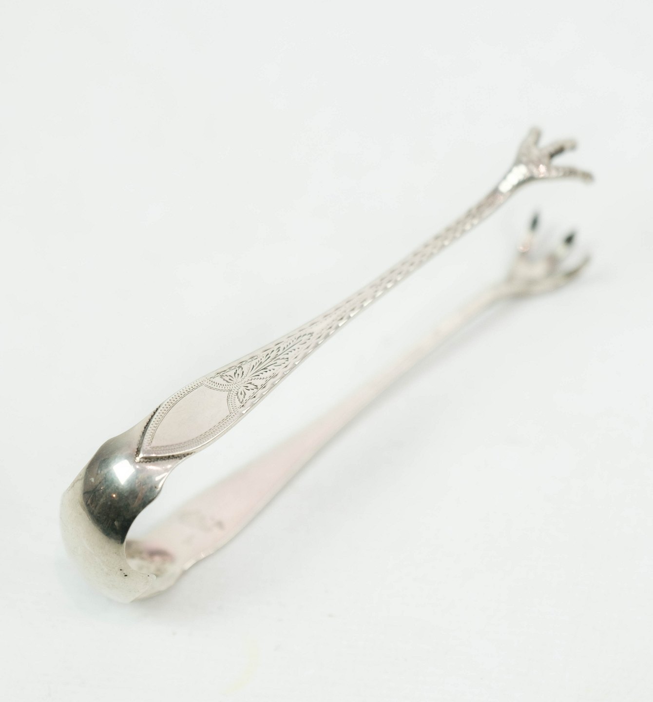 Ice cube tongs in Empire of hallmarked silver.