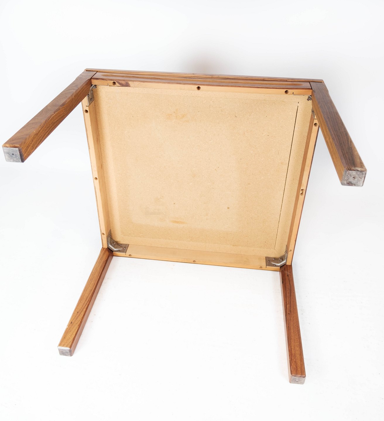 Palisandertræets varme toner og smukke mønster giver bordet en tidløs elegance, der passer perfekt ind i enhver indretningsstil. De indsatte klinker tilføjer en interessant detalje og et strejf af originalitet til bordets design.