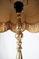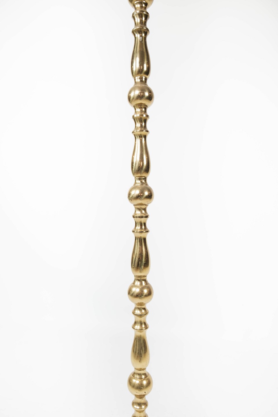 Floor lamp of brass and shade of fabric, in great antique condition.